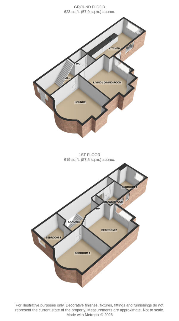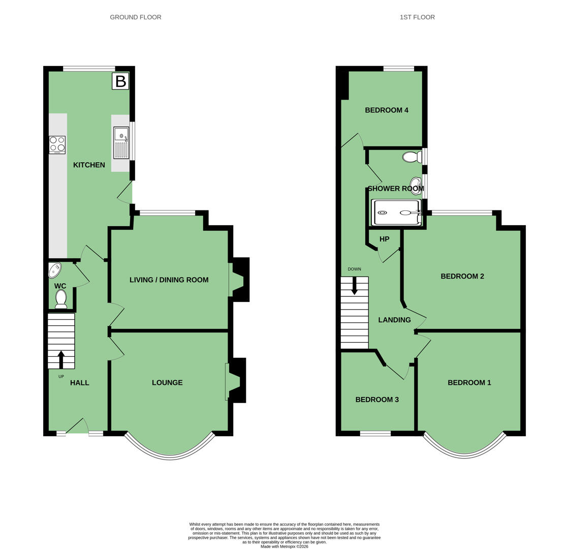 Upstairs, the property provides four well-proportioned bedrooms, all bright and comfortably sized with neutral décor. The two front-facing bedrooms benefit from attractive bay-style windows. A modern shower room features a walk-in enclosure and contemporary finishes.