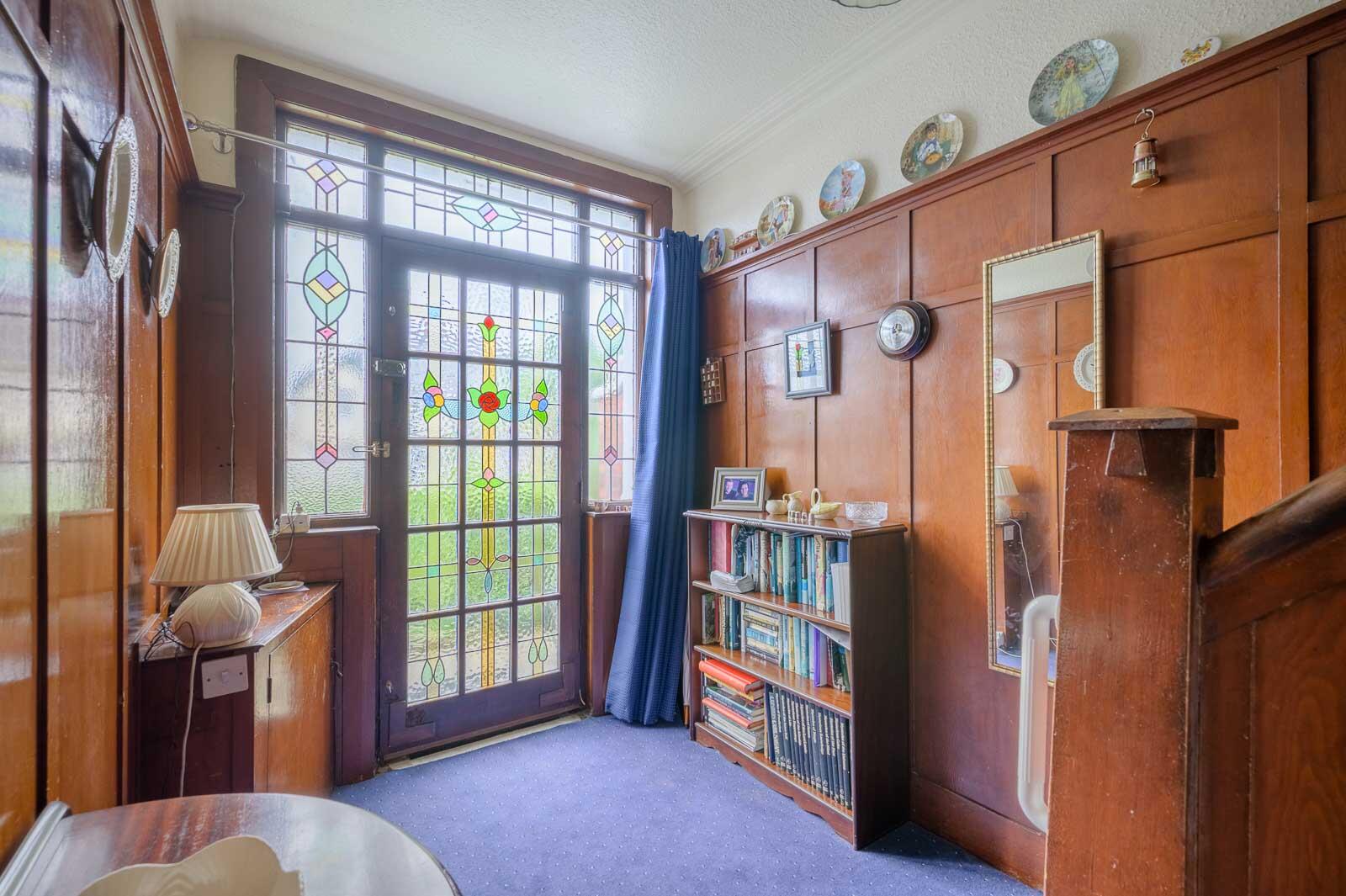 Entrance - Hardwood front door with stained glass inserts into entrance hall.