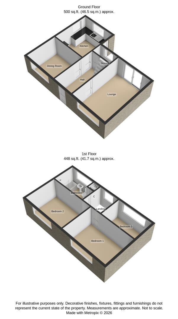 Upstairs, the property provides three well-proportioned bedrooms, all bright and tastefully finished, with excellent storage options and pleasant outlooks over the surrounding neighbourhood. The modern family bathroom features a white suite, corner bath with shower over, and contemporary tiling.