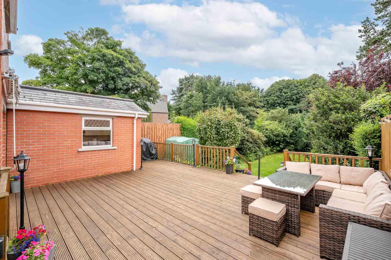 Externally, the property benefits from a driveway for ample off-street parking. To the rear is a superb garden in lawn with feature raised decking area and paved patio area. Mature trees, shrubs and hedging complete this wonderful outside area.