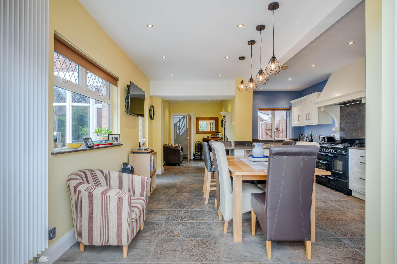 Offering bright and spacious accommodation throughout, on the ground floor, the property comprises of a reception hall, downstairs cloaks and shower room, family room, separate lounge with bow window, modern fitted kitchen with range of integrated appliances, open plan to ample dining and living space, and a separate utility room. To the first floor, there are four well-proportioned bedrooms, principal with modern ensuite shower room and built in robes, a luxurious family bathroom with white suite. The property further benefits from gas heating, uPVC double glazing throughout and a two floored roof spaces, excellent for storage.