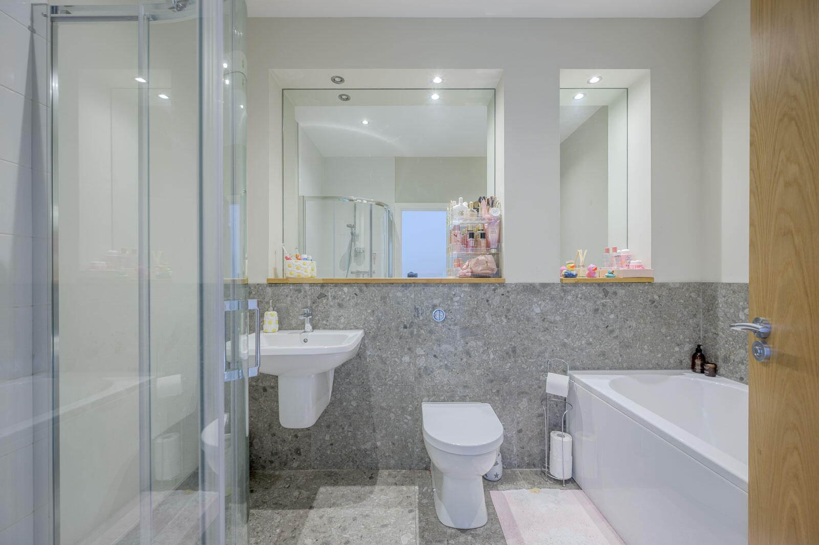 .Sleek, Tiled Bathrooms with Contemporary Sanitary Ware and High-End Finishes Throughout