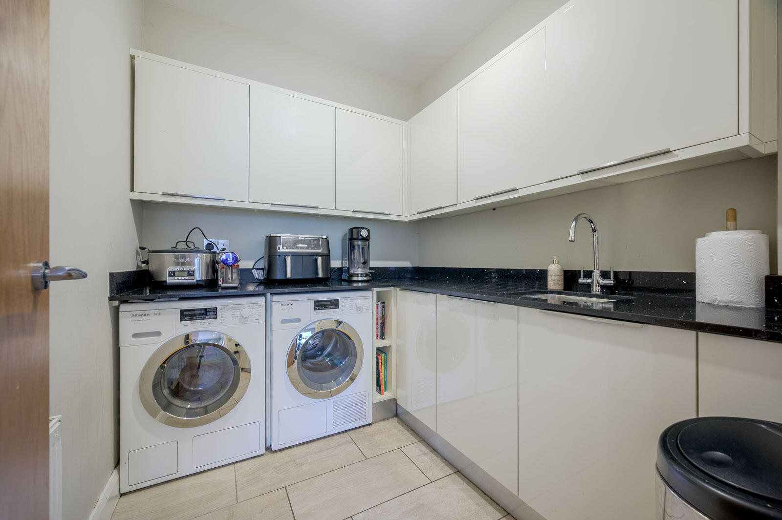 Utility Room: - 6'10" x 6'8" - With matching high- and low-level units, black granite worktop, stainless steel sink unit, chrome mixer taps, plumbed for washing machine, tumble dryer space, ceramic tiled floor.