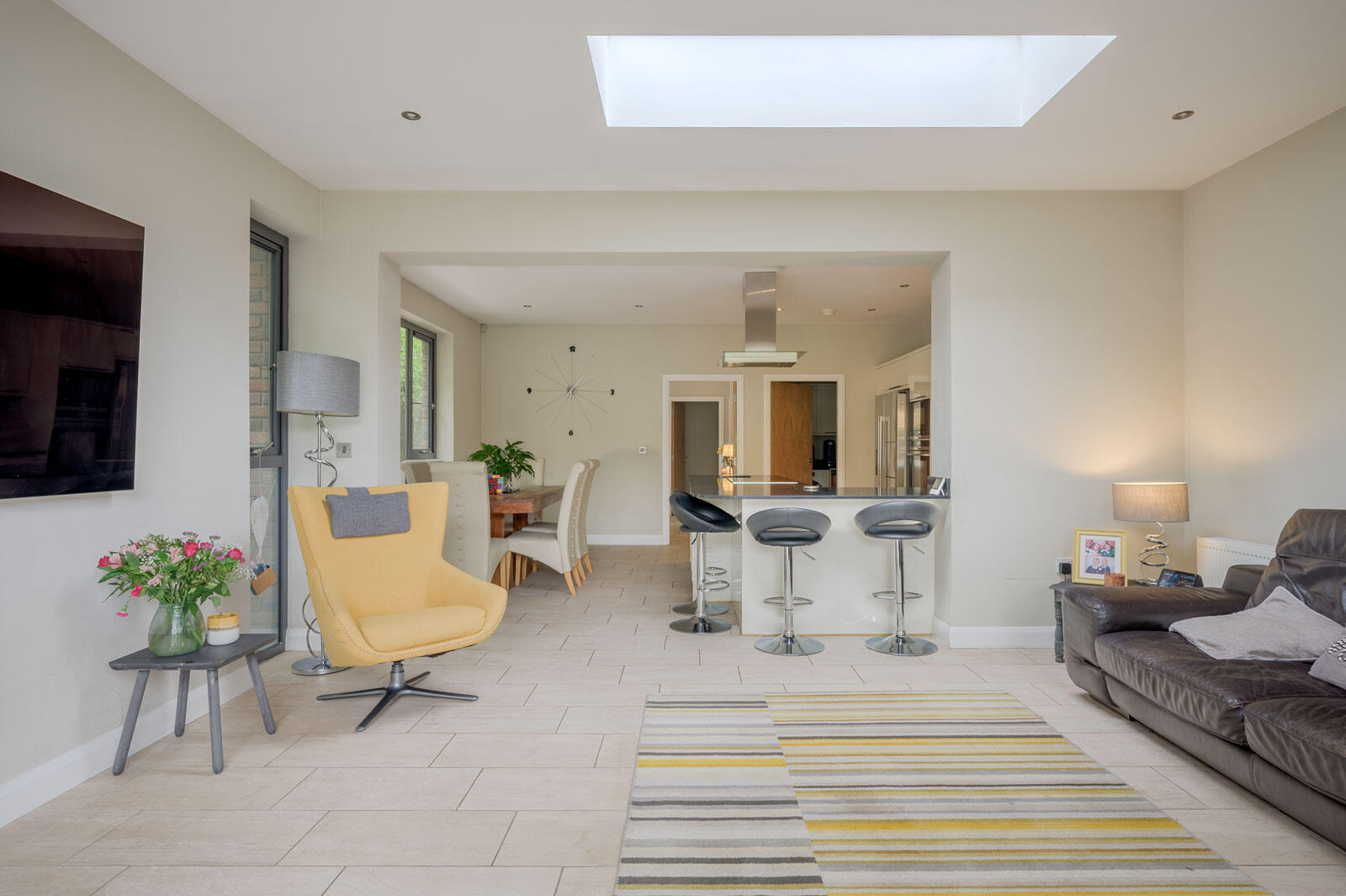 .Generous Living Room with Boxed Skylight and Aluminium Sliding Patio Doors to Rear Garden