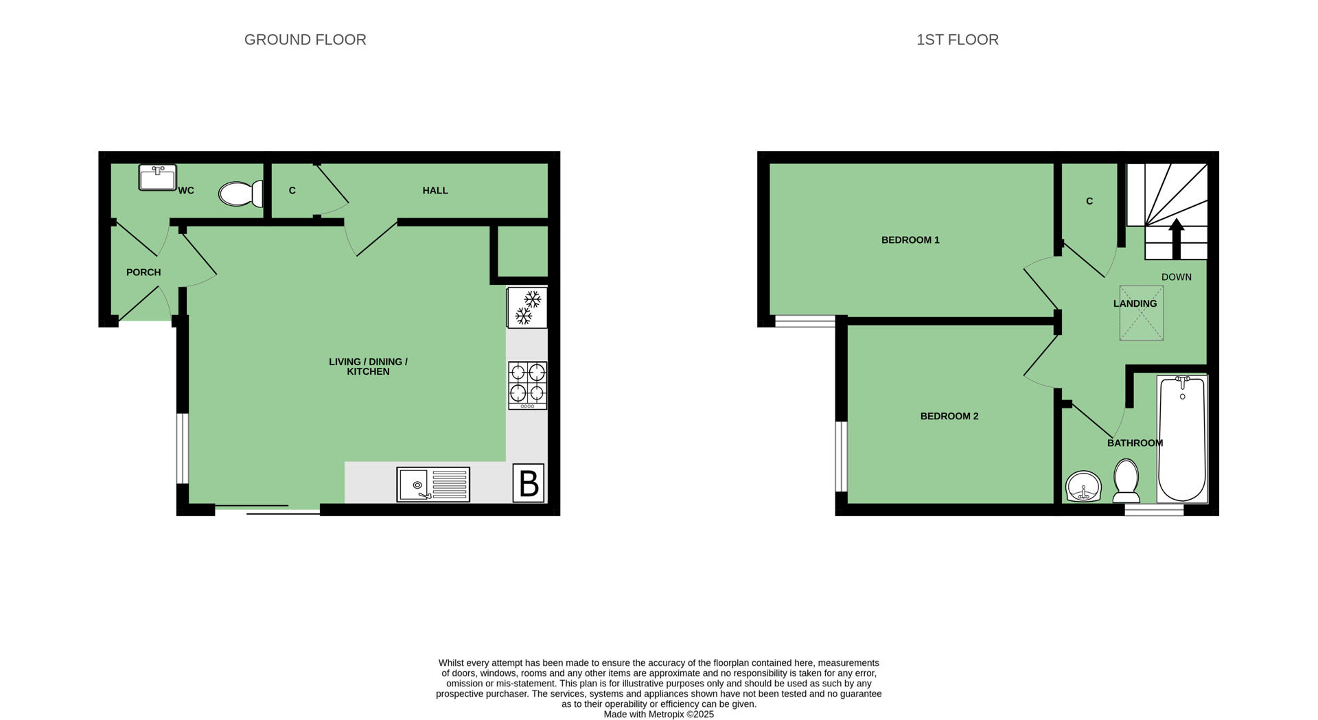 Upstairs, two well-proportioned bedrooms provide a peaceful retreat, while the sleek bathroom boasts a modern finish with a full bath and shower. The property has been maintained to a high standard throughout, showcasing elegant interiors and a welcoming, homely feel.