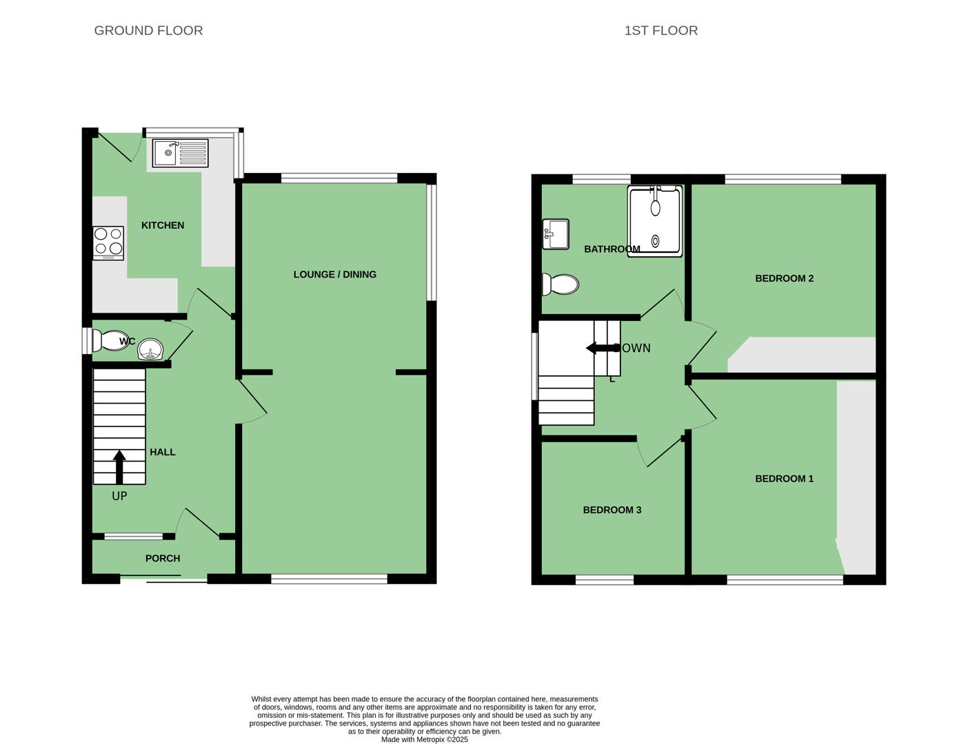 The kitchen is fitted with a range of units and a practical breakfast area, with direct access to the rear garden. The space is functional and well-maintained, with scope for modernisation if desired. Upstairs, there are three well-proportioned bedrooms, along with a contemporary family shower room boasting a walk-in shower enclosure, mosaic tiling, and modern sanitary ware. A convenient ground-floor cloakroom with WC completes the accommodation.