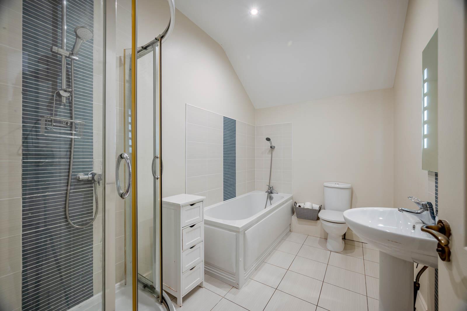 - Contemporary Bathroom with Four Piece White Suite