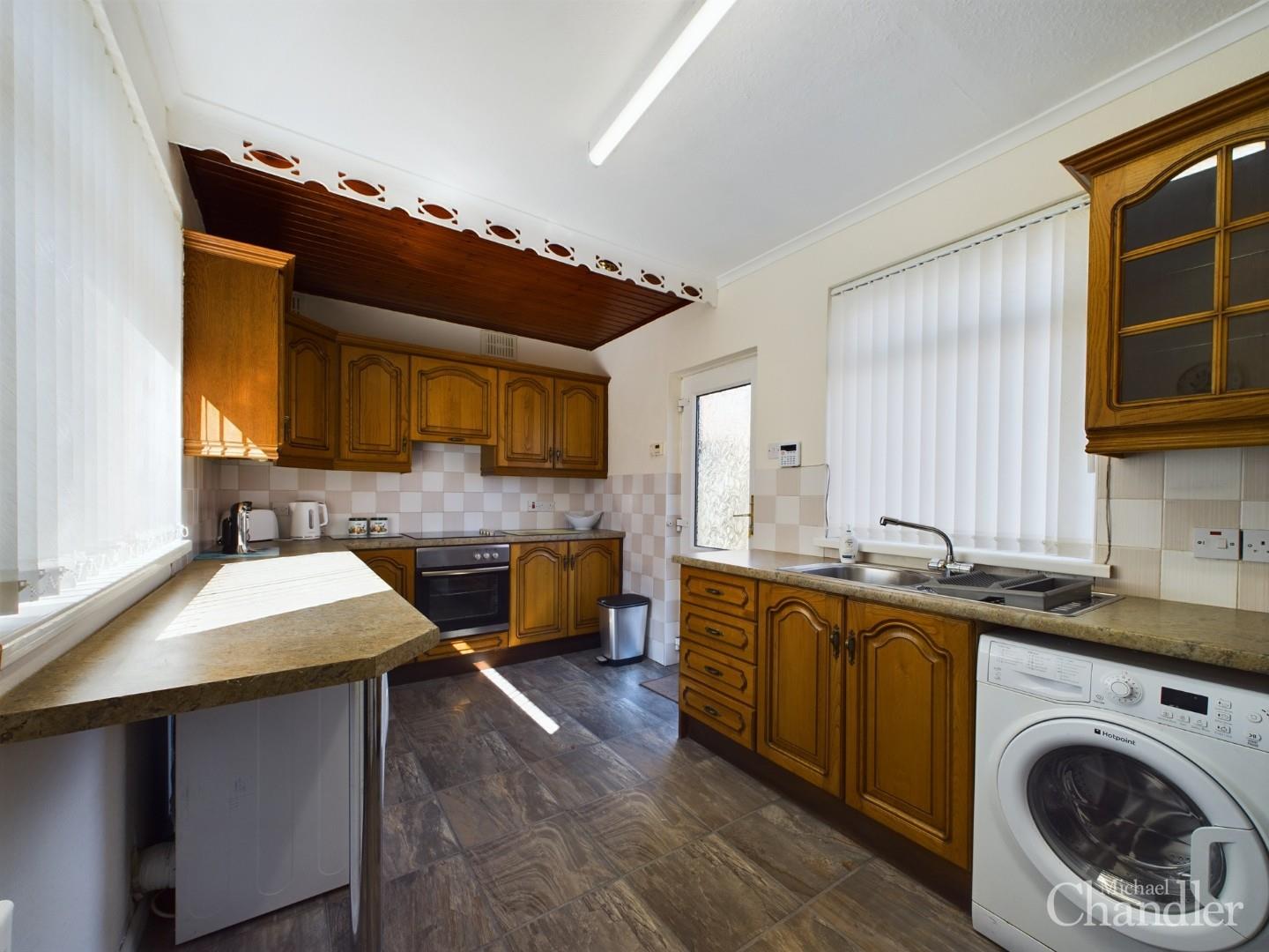 Kitchen benefitting from dual aspect windows, a breakfast bar and plumbed for white goods