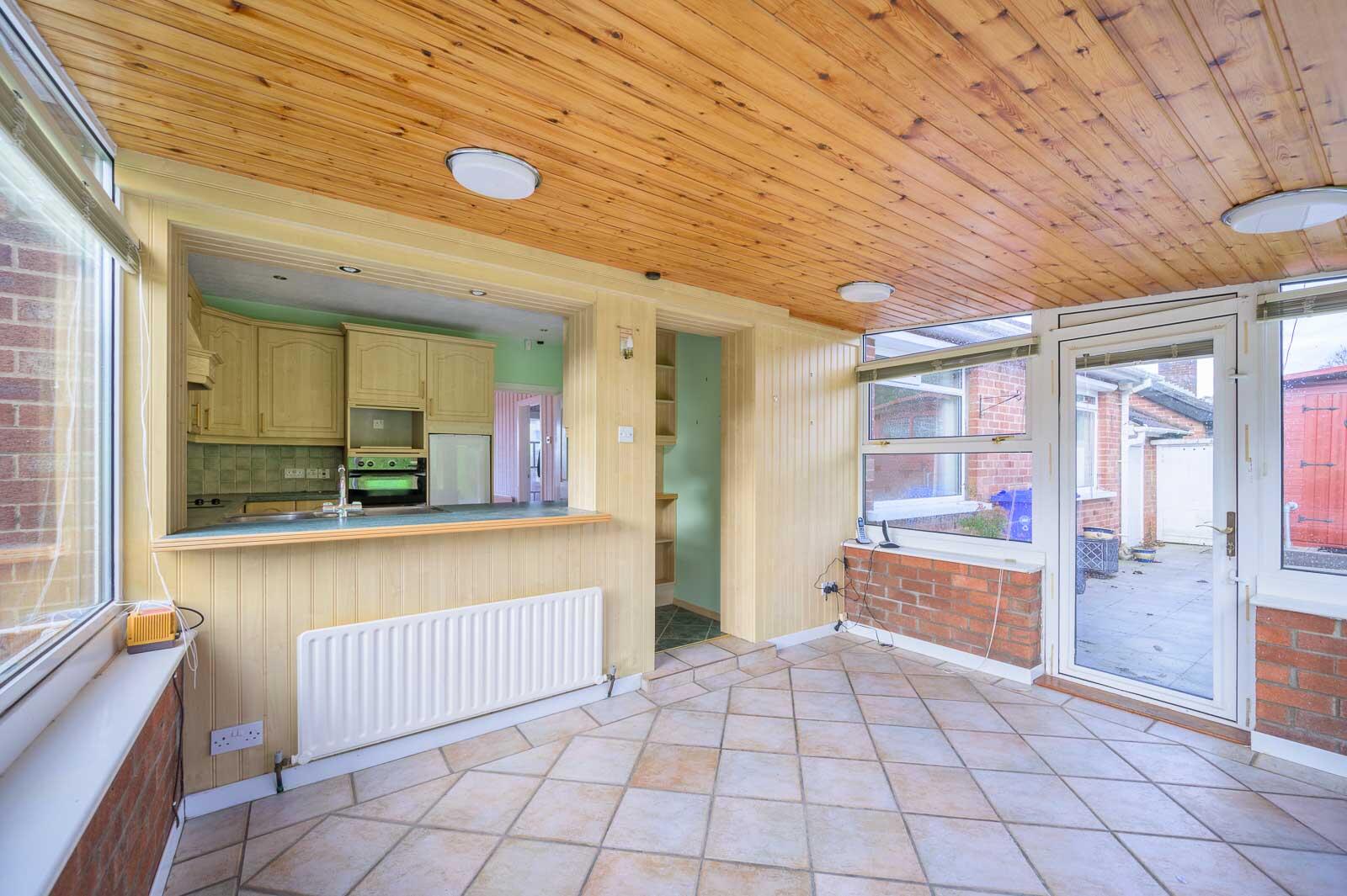 Sun Room: - 12'2" x 10'7" - With pine tongue and groove ceiling, PVC double glazed back door to rear garden, tiled floor.