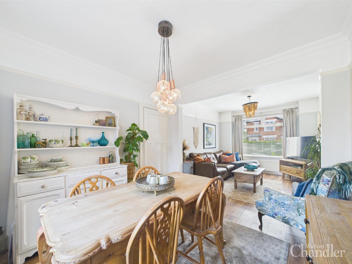 Open plan living/dining with dual aspect windows and a beautiful feature fireplace