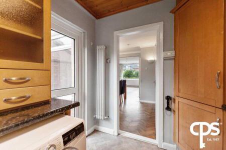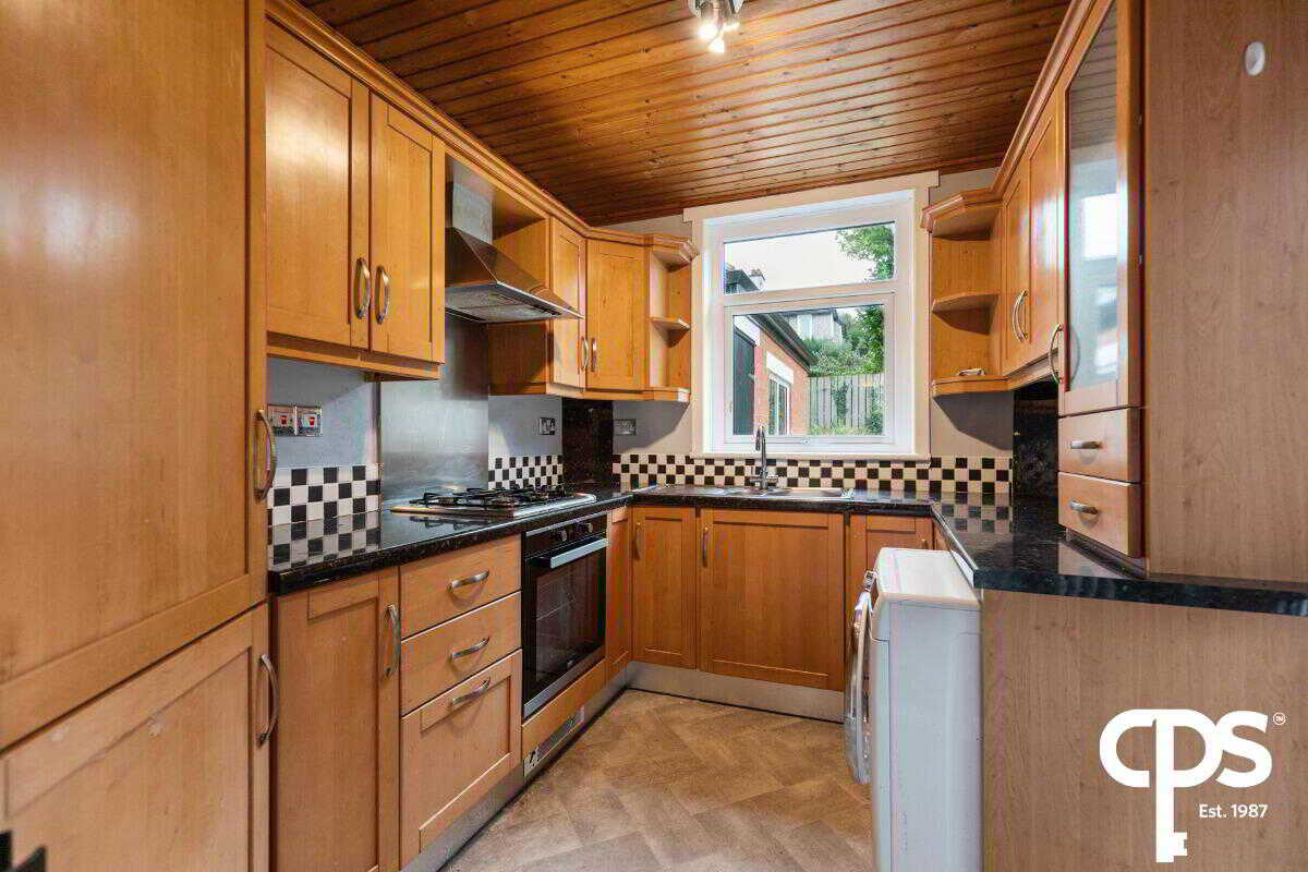 Fully fitted kitchen with storage through high and low units, tiled flooring and access to rear private garden.