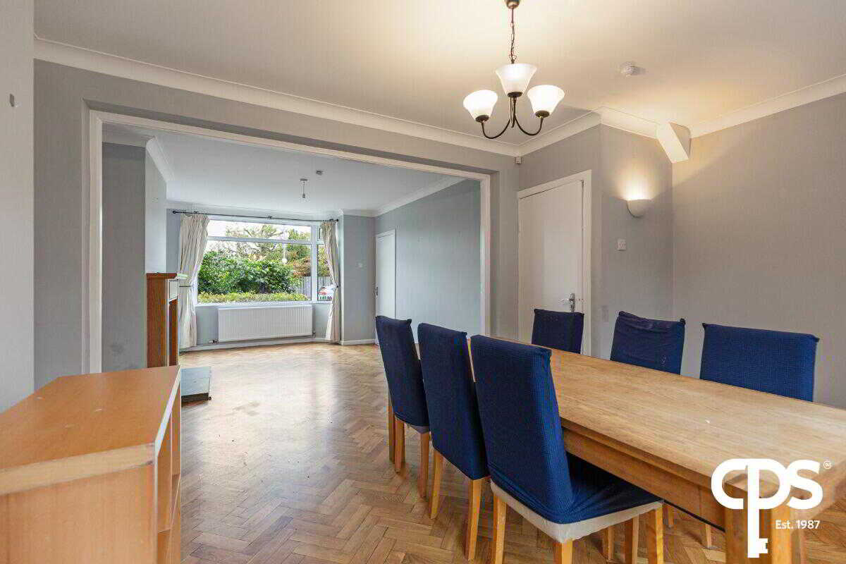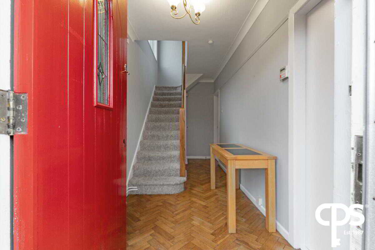 The ground floor of the property comprises a bright open-plan lounge and dining area featuring attractive parquet flooring and large windows that fill the space with natural light, fitted kitchen including ample storage and overlooking the rear garden and a downstairs wc. The first floor holds three well-proportioned bedrooms and a family bathroom.