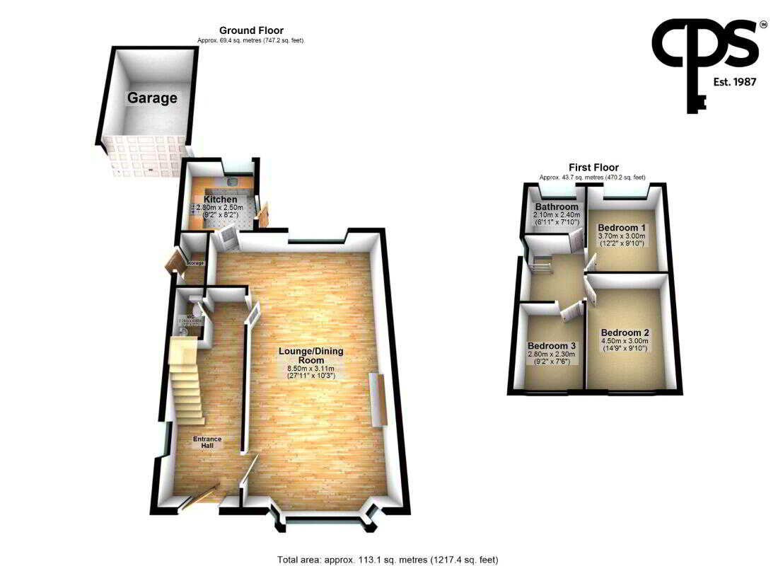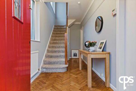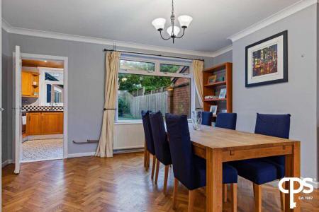 The ground floor of the property comprises a bright open-plan lounge and dining area featuring attractive parquet flooring and large windows that fill the space with natural light, fitted kitchen including ample storage and overlooking the rear garden and a downstairs WC. The first floor holds three well-proportioned bedrooms and a family bathroom.