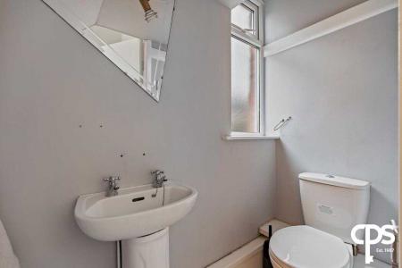 Convenient downstairs WC comprising a toilet and wash hand basin.