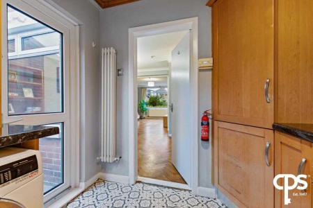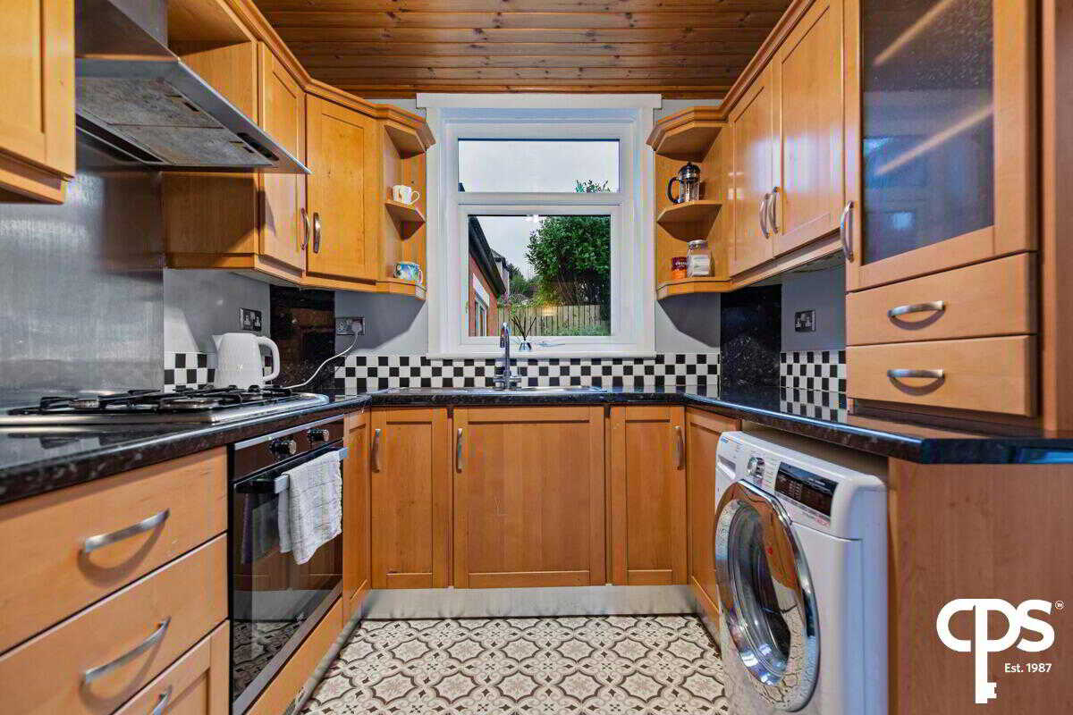 Fully fitted kitchen with storage through high and low units, tiled flooring and access to rear private garden.