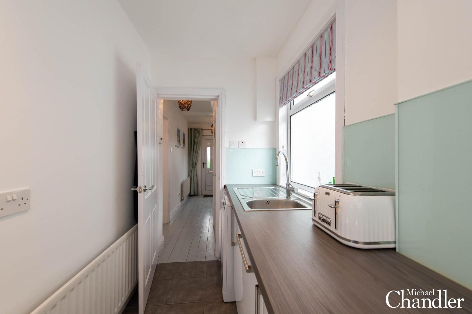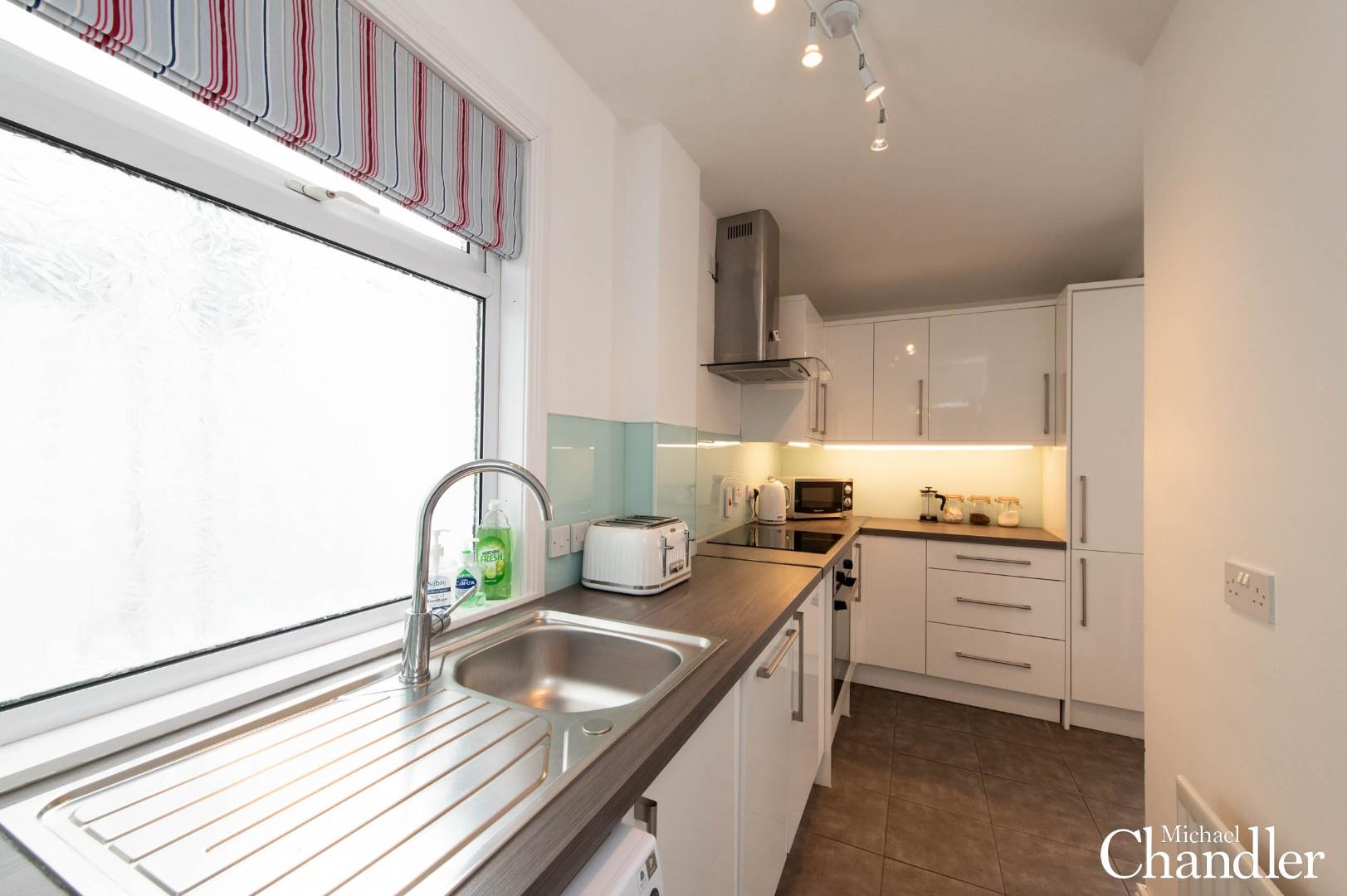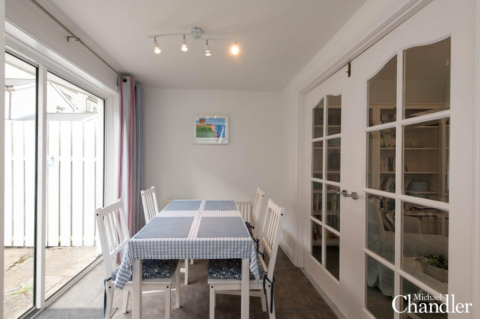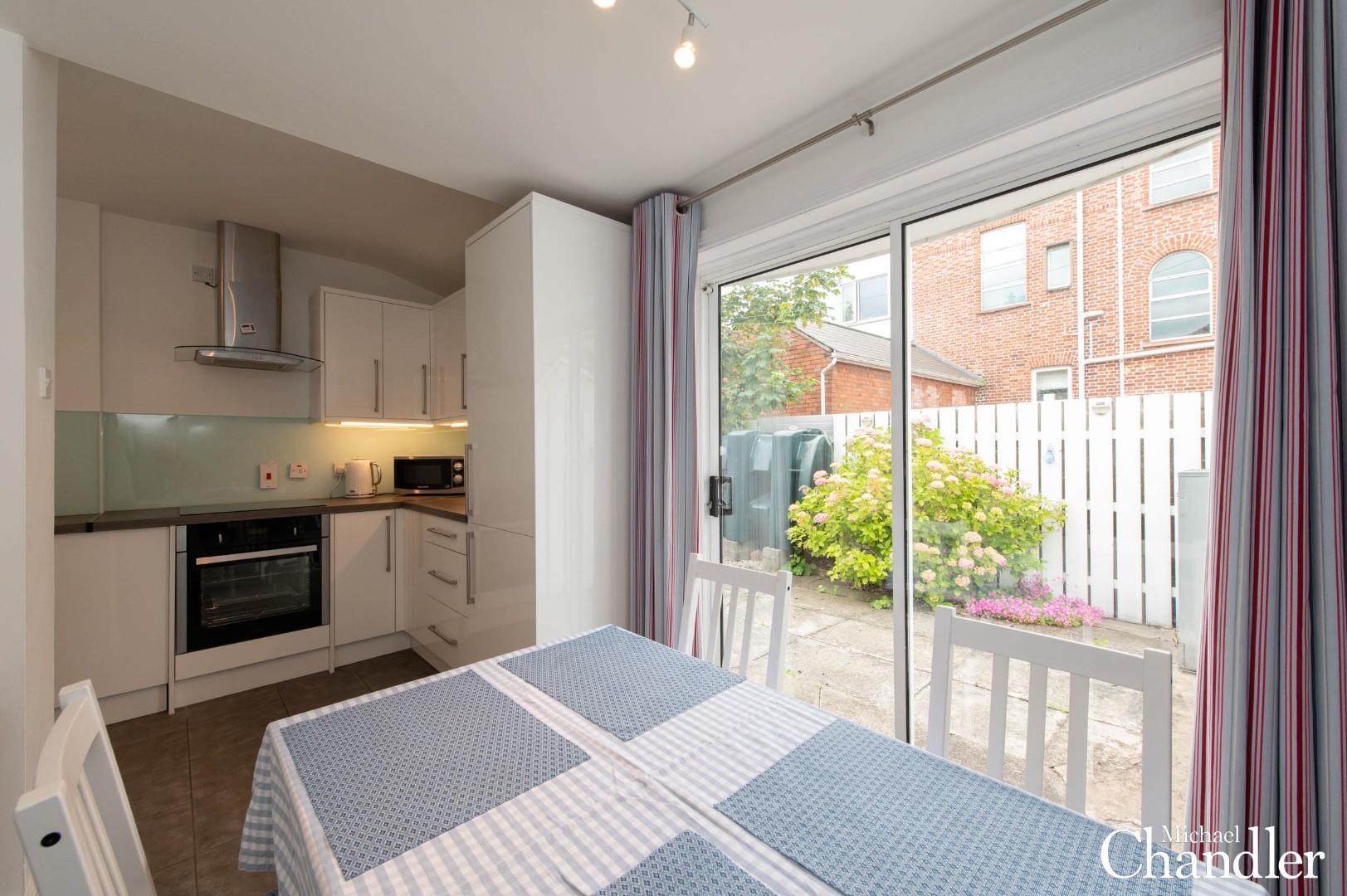 Modern kitchen with excellent storage with an open plan dining area and access to the garden