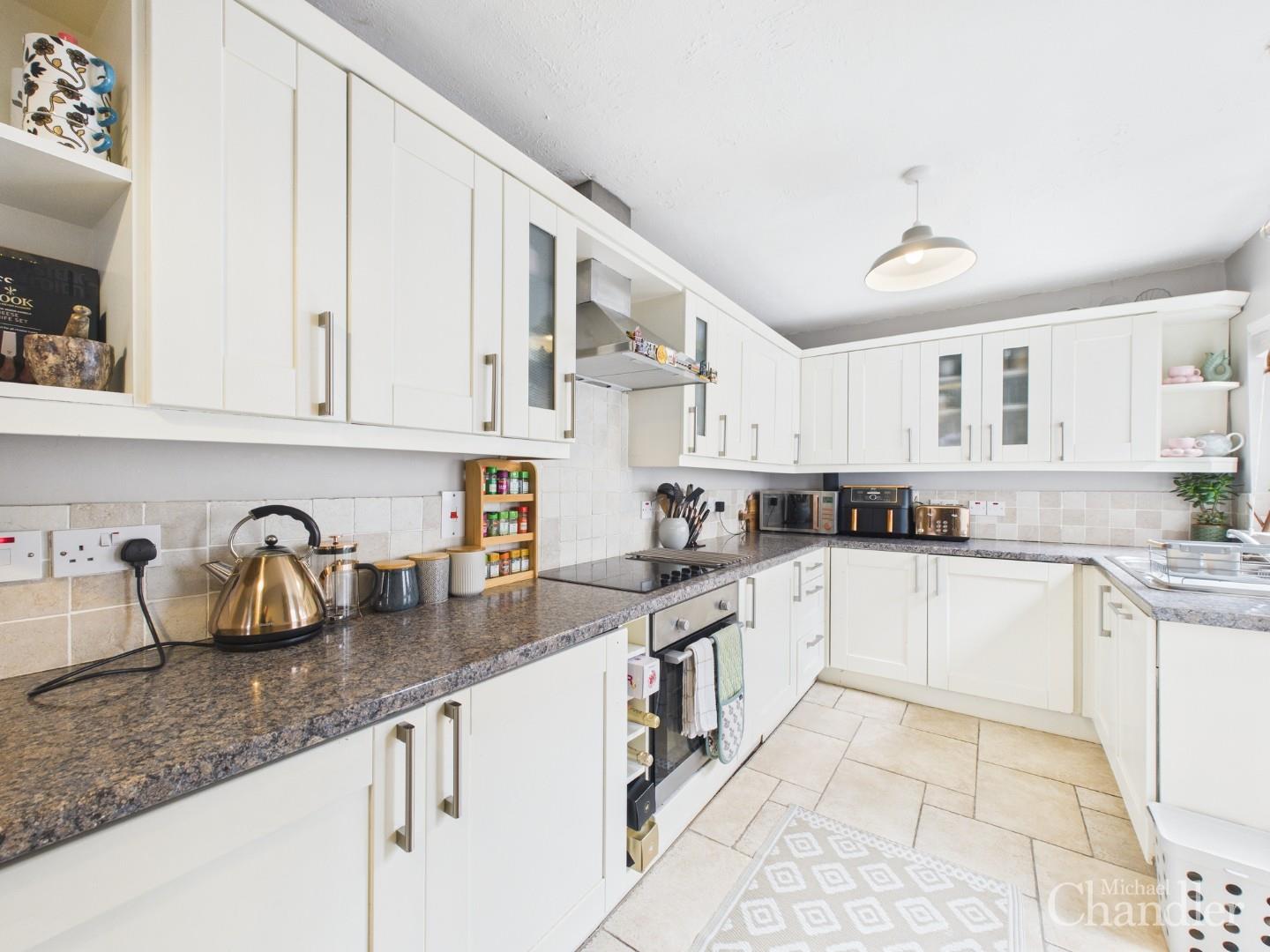Modern kitchen benefitting from built in appliances & space for a further dining area or home office