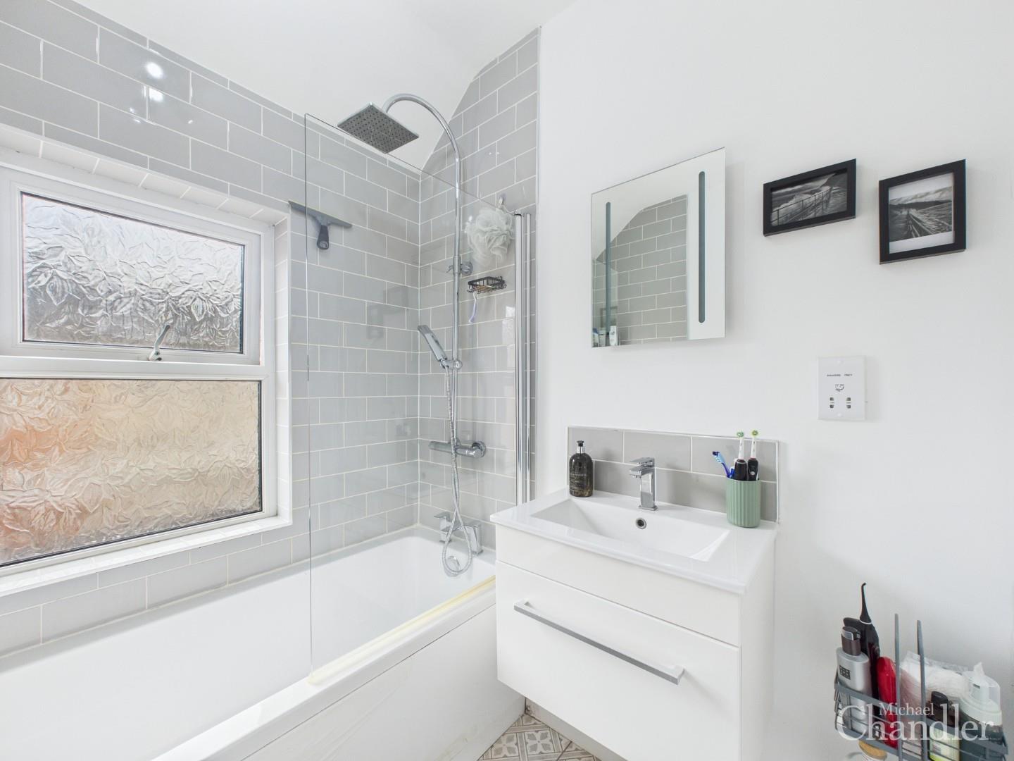 Stylish bathroom complete with white three piece suite