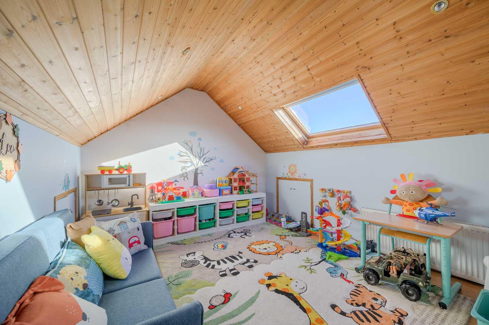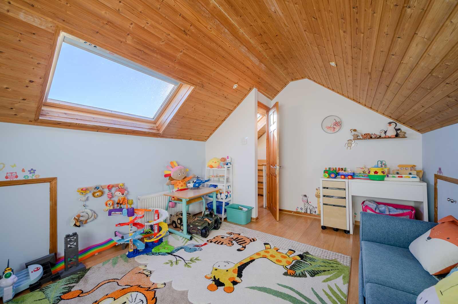 Fixed Staircase To Fully Floored Roof Space: - Velux x two, laminate wooden floor, tongue and groove ceiling, low voltage recessed spotlighting, storage into eaves.