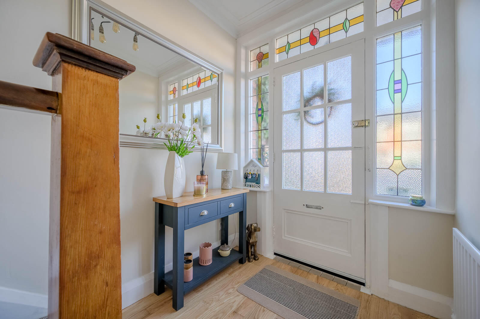 Front Door: - Hardwood glazed front door with stained glass side and top lights into spacious reception hall.