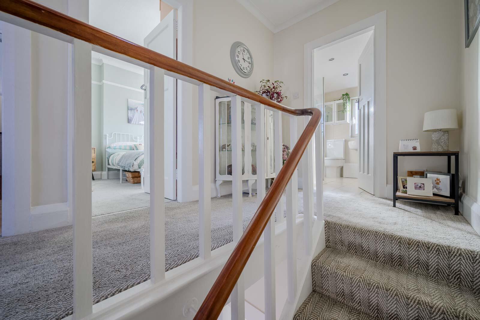 Stairs To First Floor Landing: - Cornice ceiling.