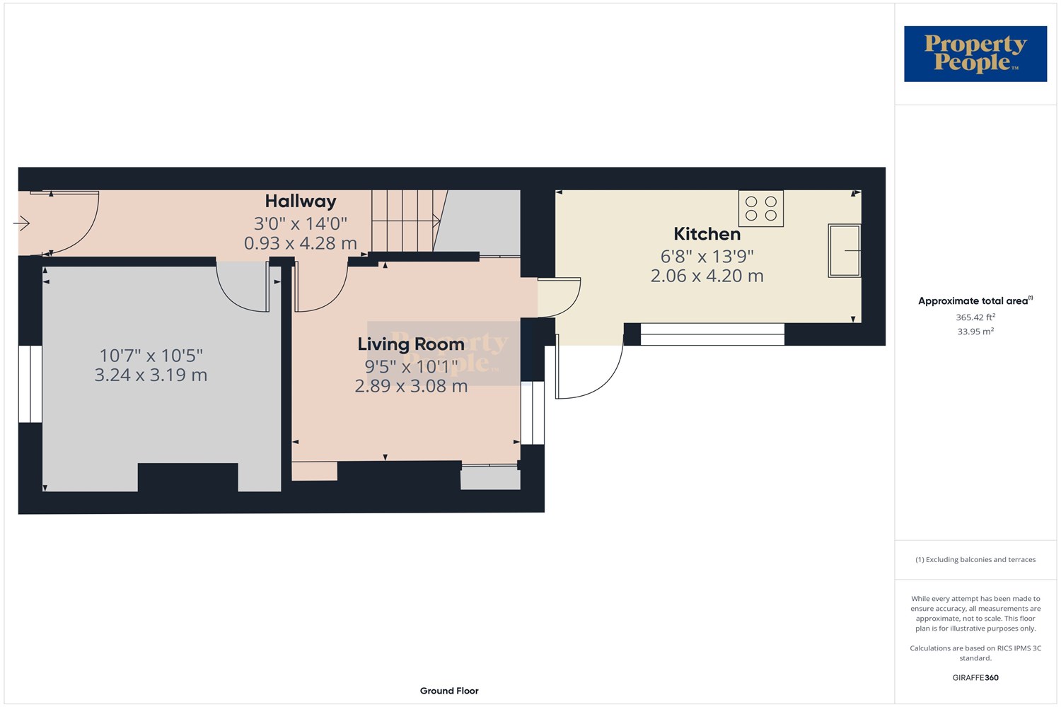 Living Room / Bedroom 3.22m (10'7) x 3.27m (10'9)