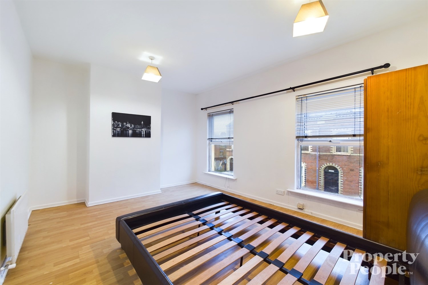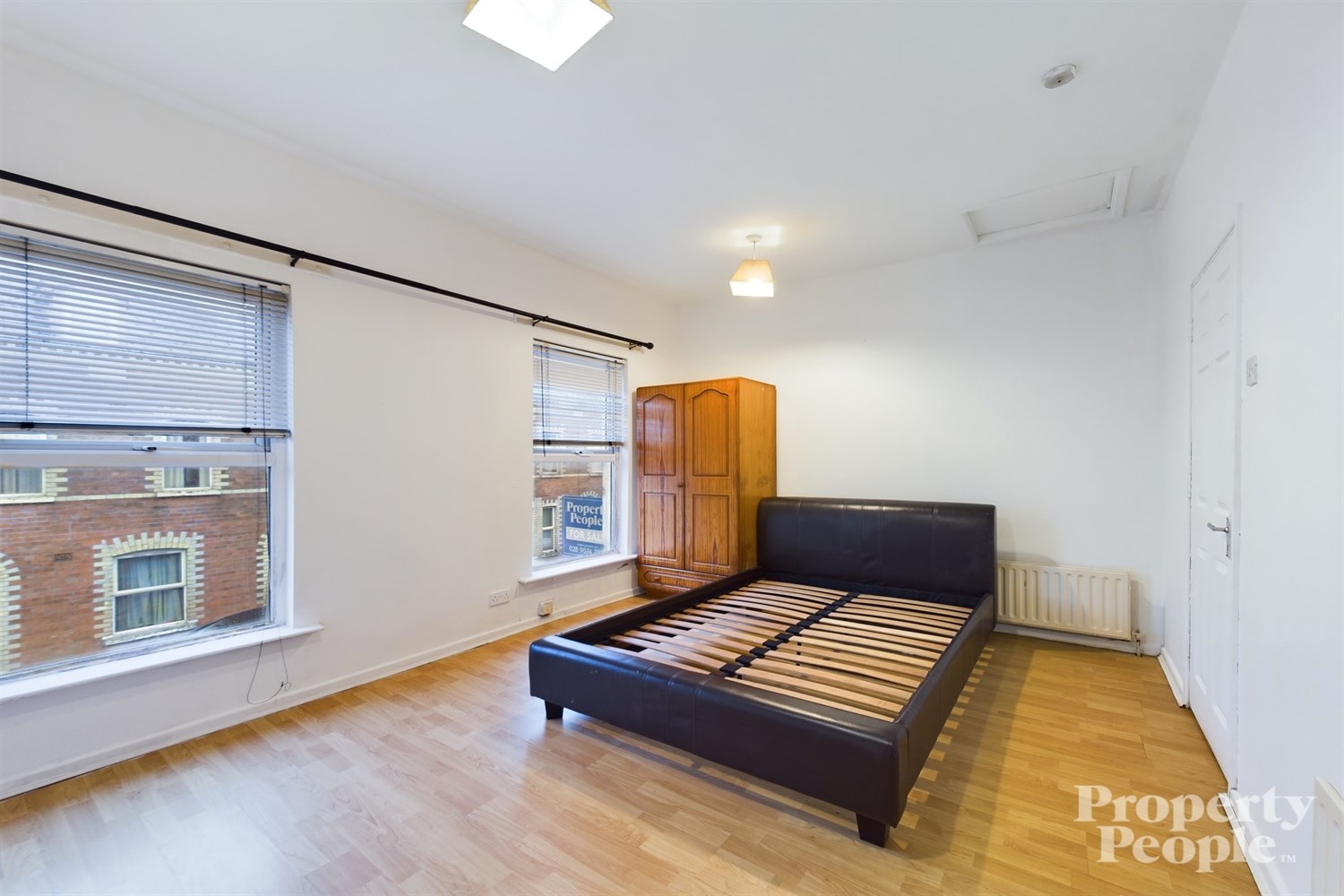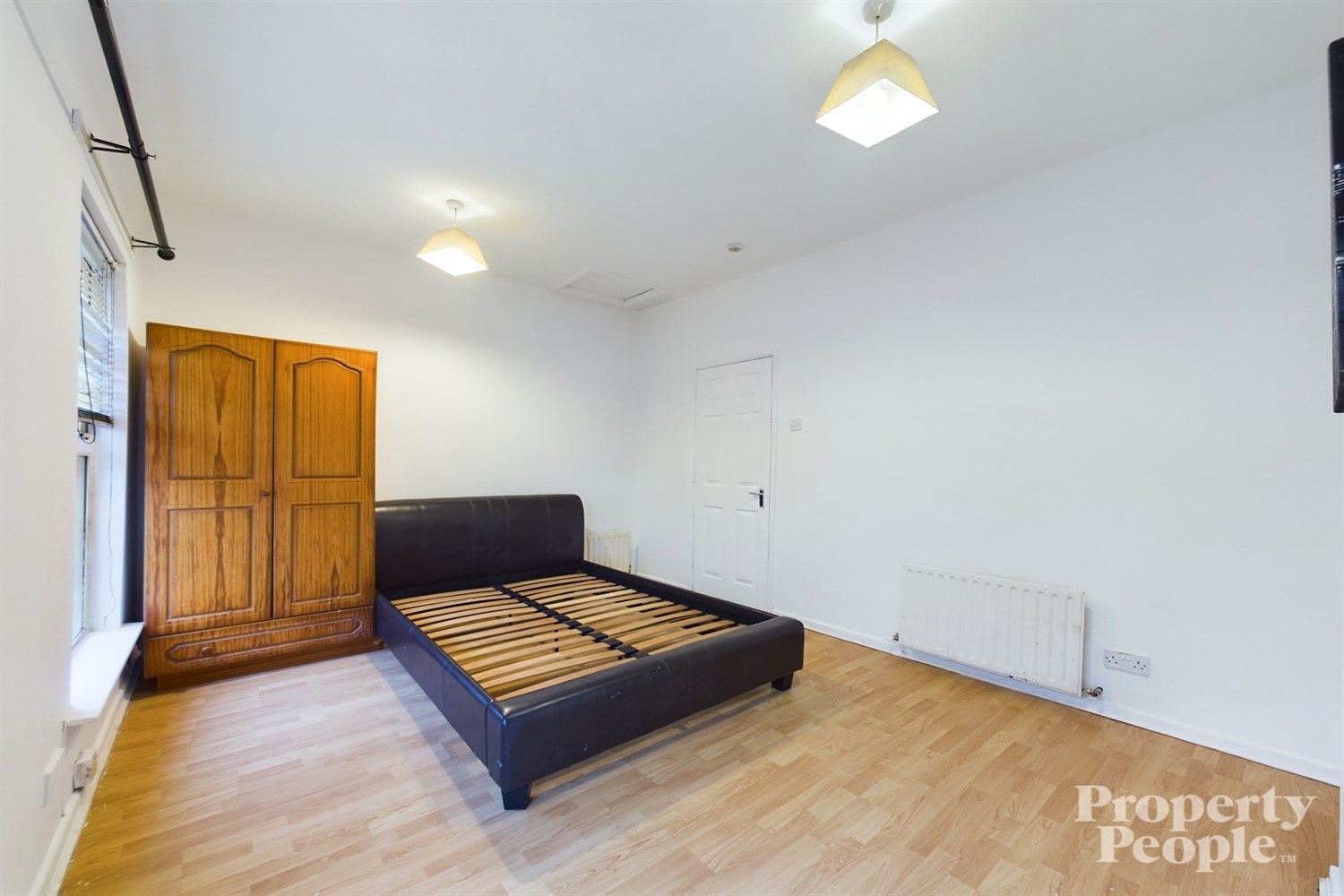 Generous master bedroom with front aspect, high ceilings, double windows flood the room with natural light. Laminate wooden floor, single panelled radiator.