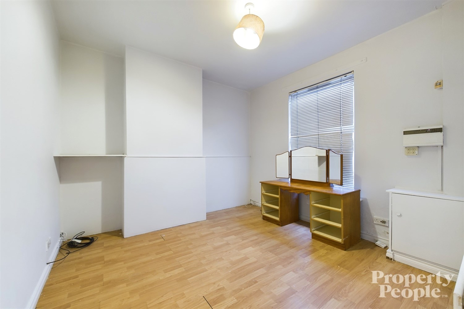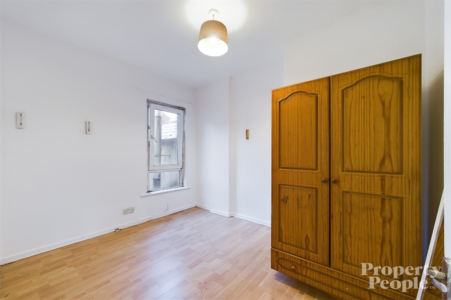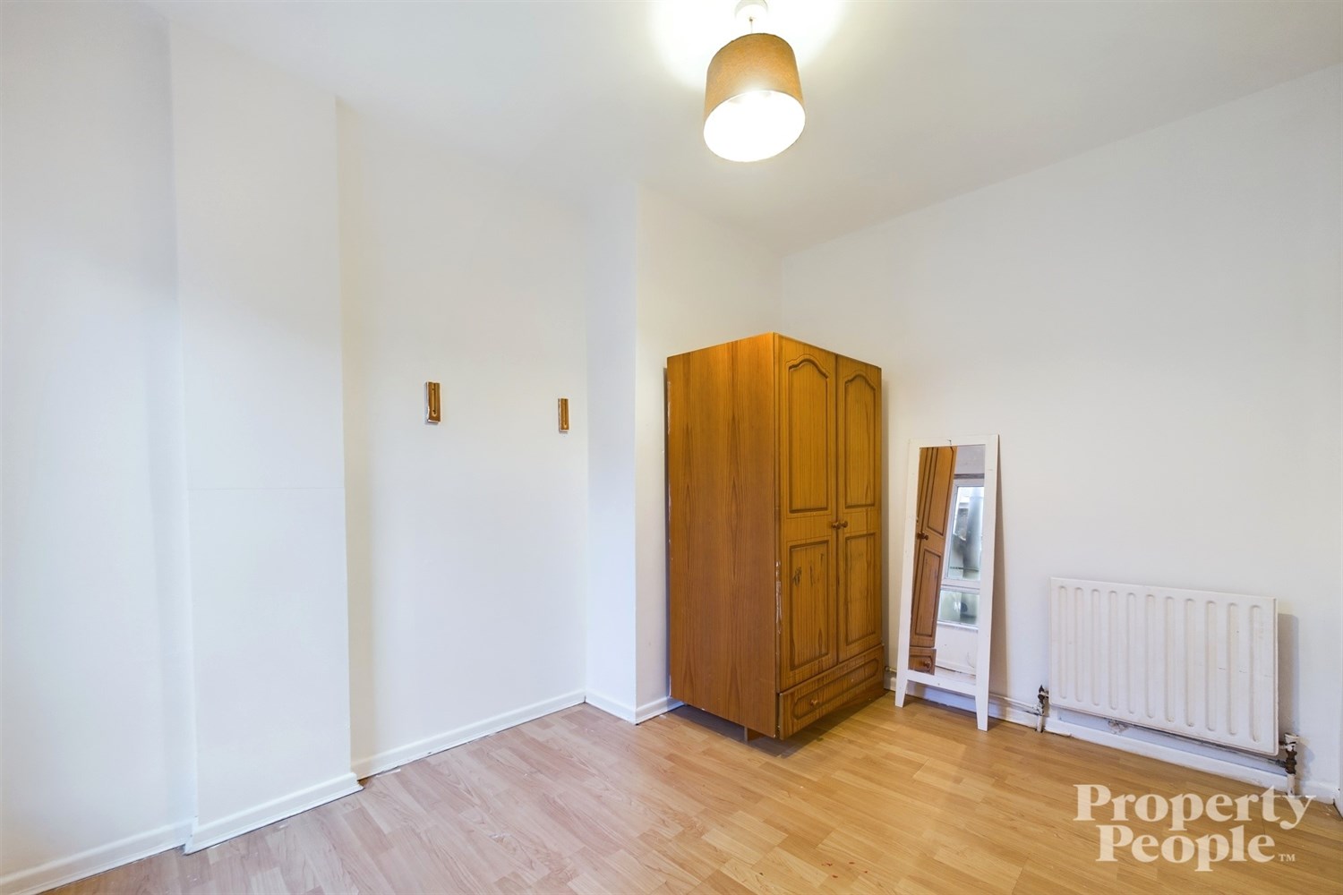 Bright double bedroom with rear aspect over yard area, high ceiling, laminate wooden floor, single panelled radiator.
