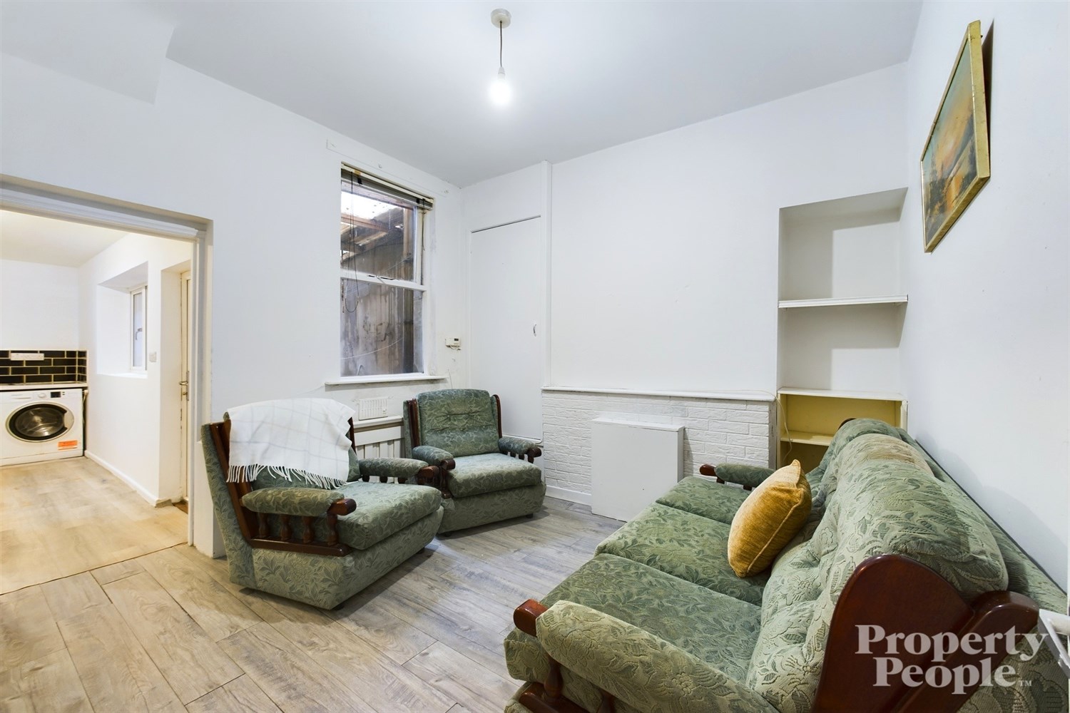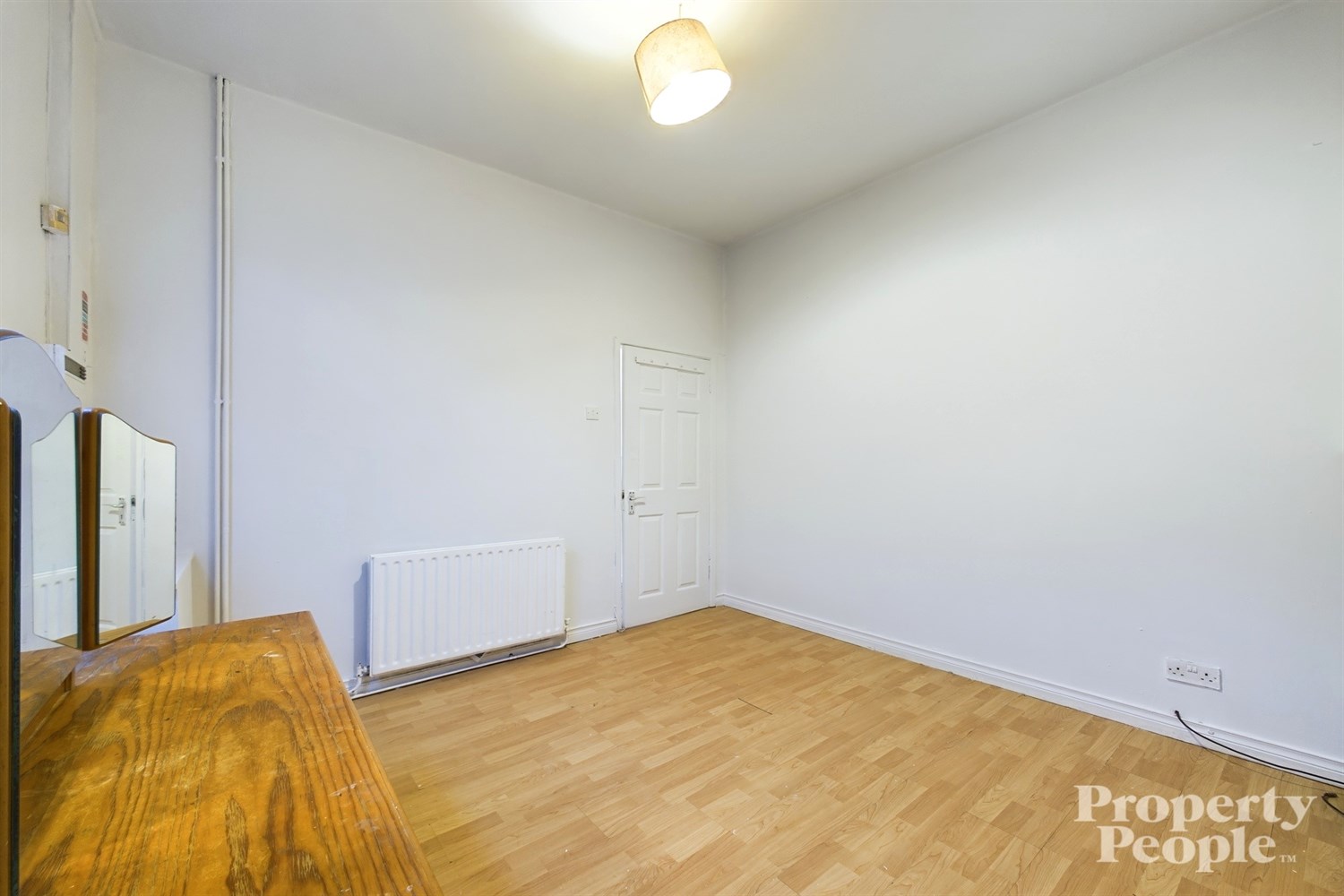 Bright and spacious front room with feature high ceilings, laminate wooden floor and single panel radiator.
