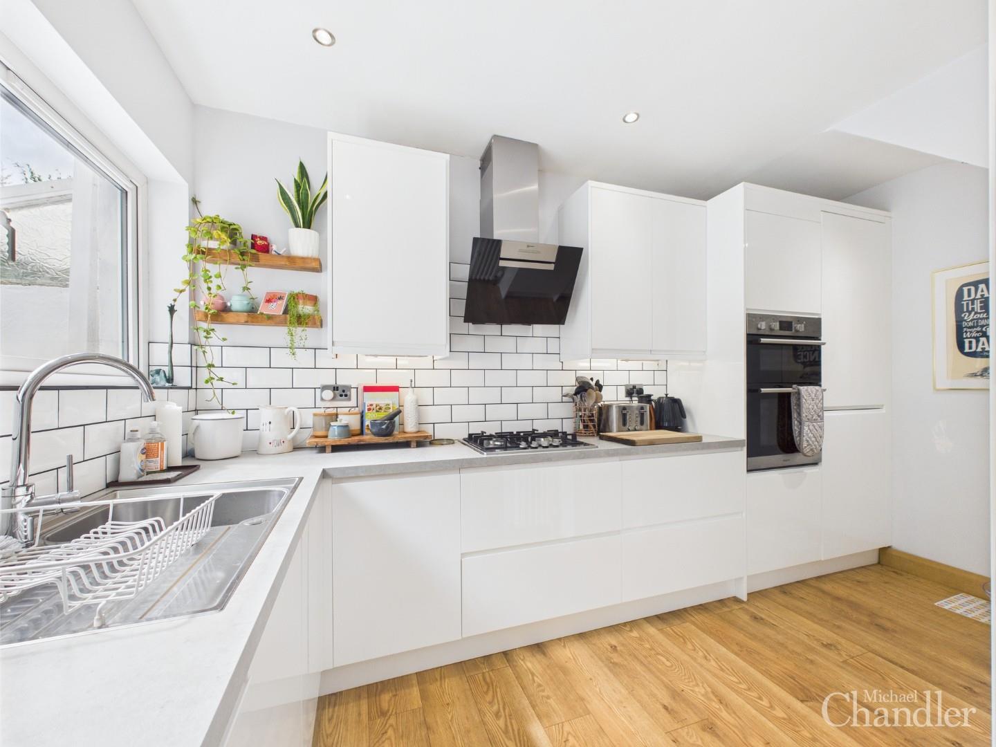Stylish kitchen/dining area with modern units and integrated appliances