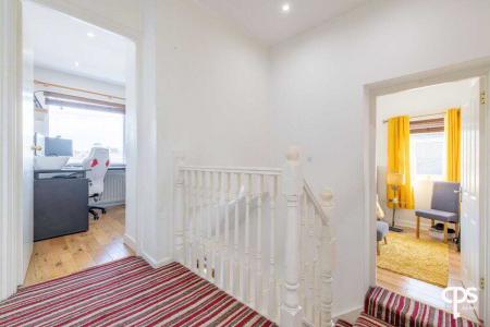 Carpeted landing with access to roof space and all bedrooms.