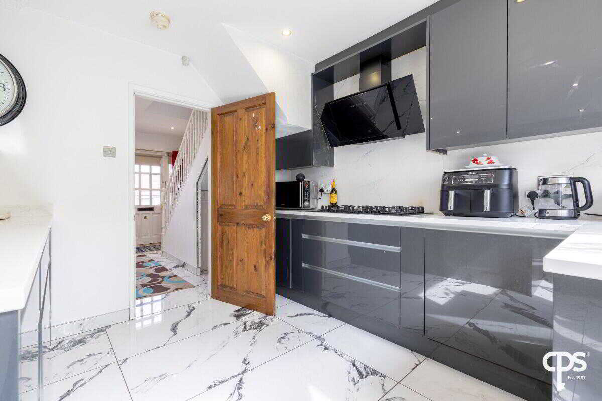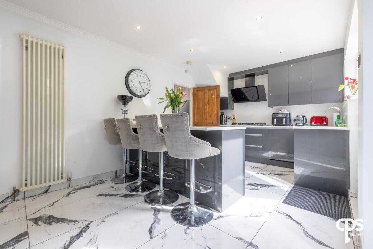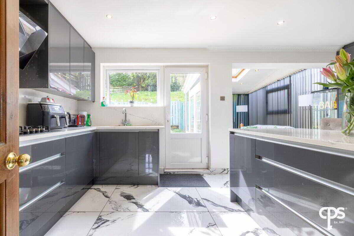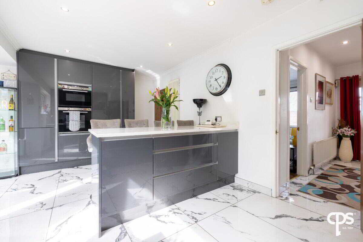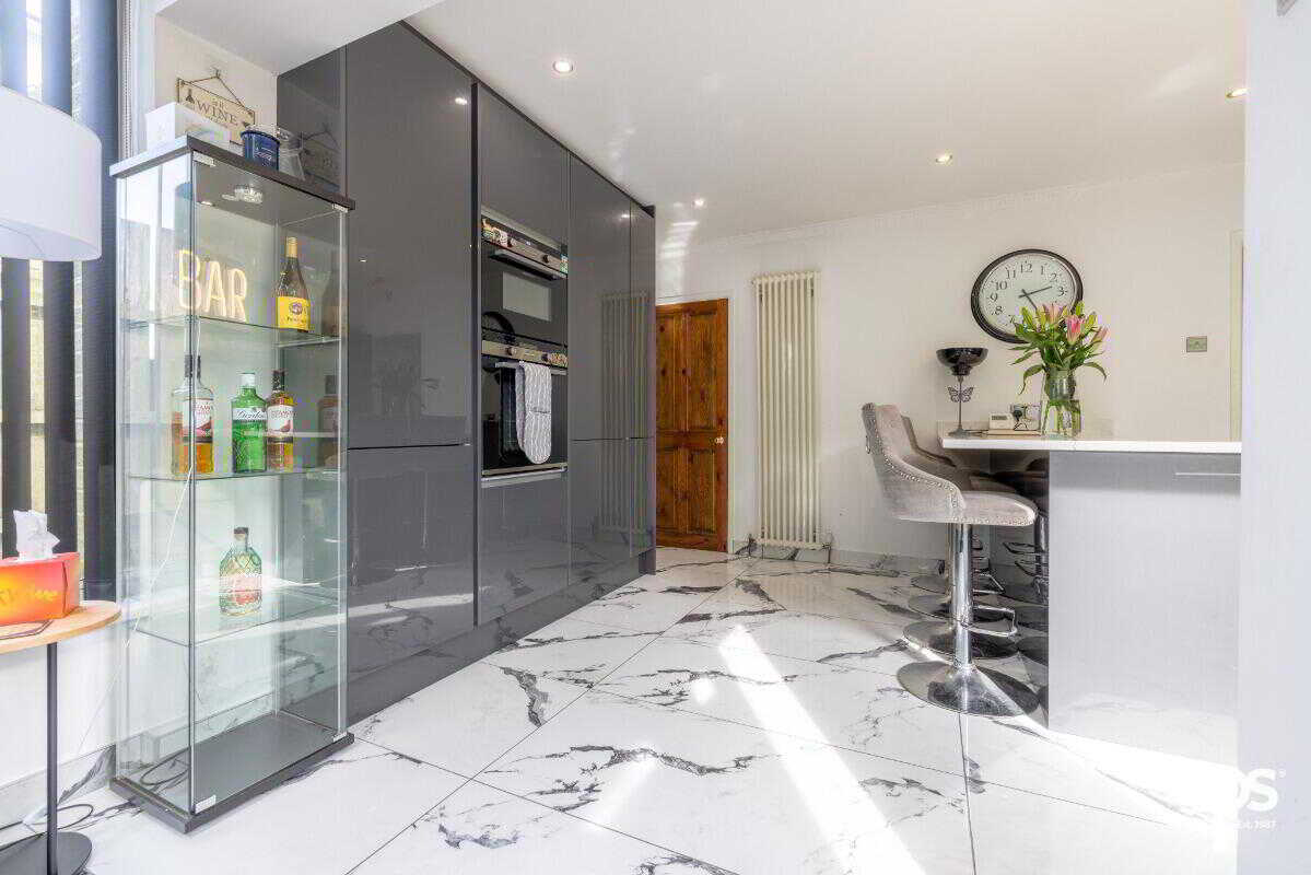 Internally, the property is exceptionally well presented throughout. The standout feature is the impressive open-plan kitchen, dining and living space, finished to a high specification with sleek high-gloss units, quartz worktops and a central island with breakfast bar seating. This space flows effortlessly into a stunning sunroom, enhanced by skylights and extensive glazing, creating a bright and inviting environment perfect for both everyday living and entertaining.