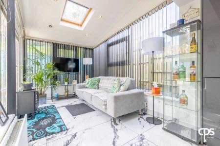 A superb additional reception space, flooded with natural light via extensive glazing and skylights, creating a bright and relaxing environment overlooking the rear garden—ideal for both everyday use and entertaining.