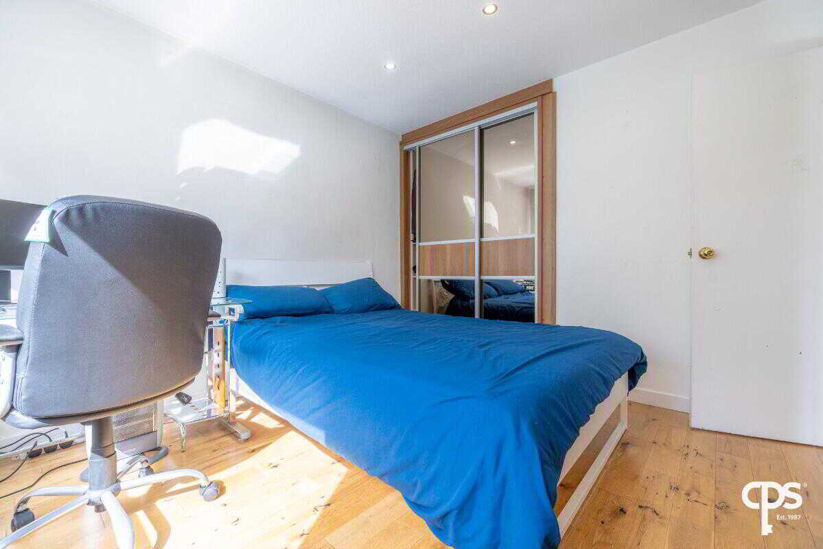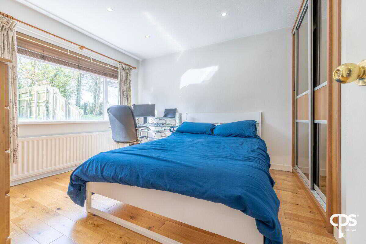 Another well-proportioned double bedroom, finished with wood-effect flooring and recessed ceiling lighting.