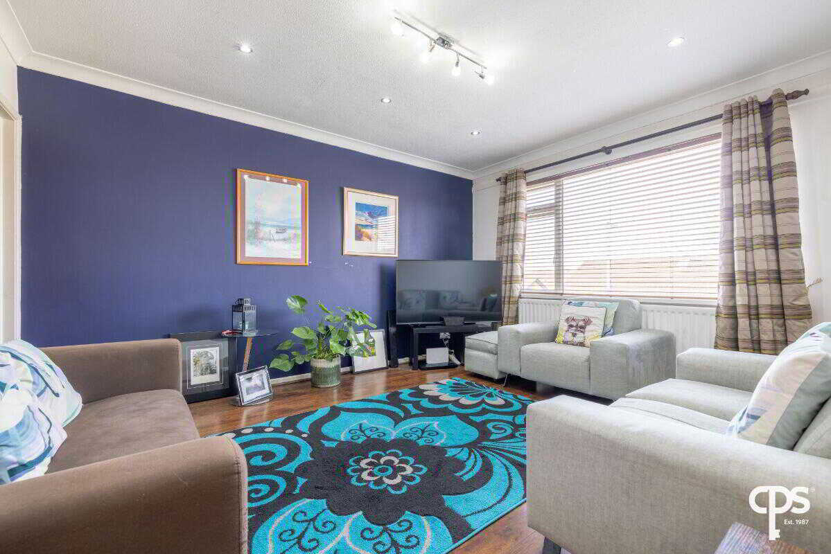 Well-proportioned front reception room, offering a comfortable and private space to relax, finished with wood-effect flooring and an abundance of natural light.