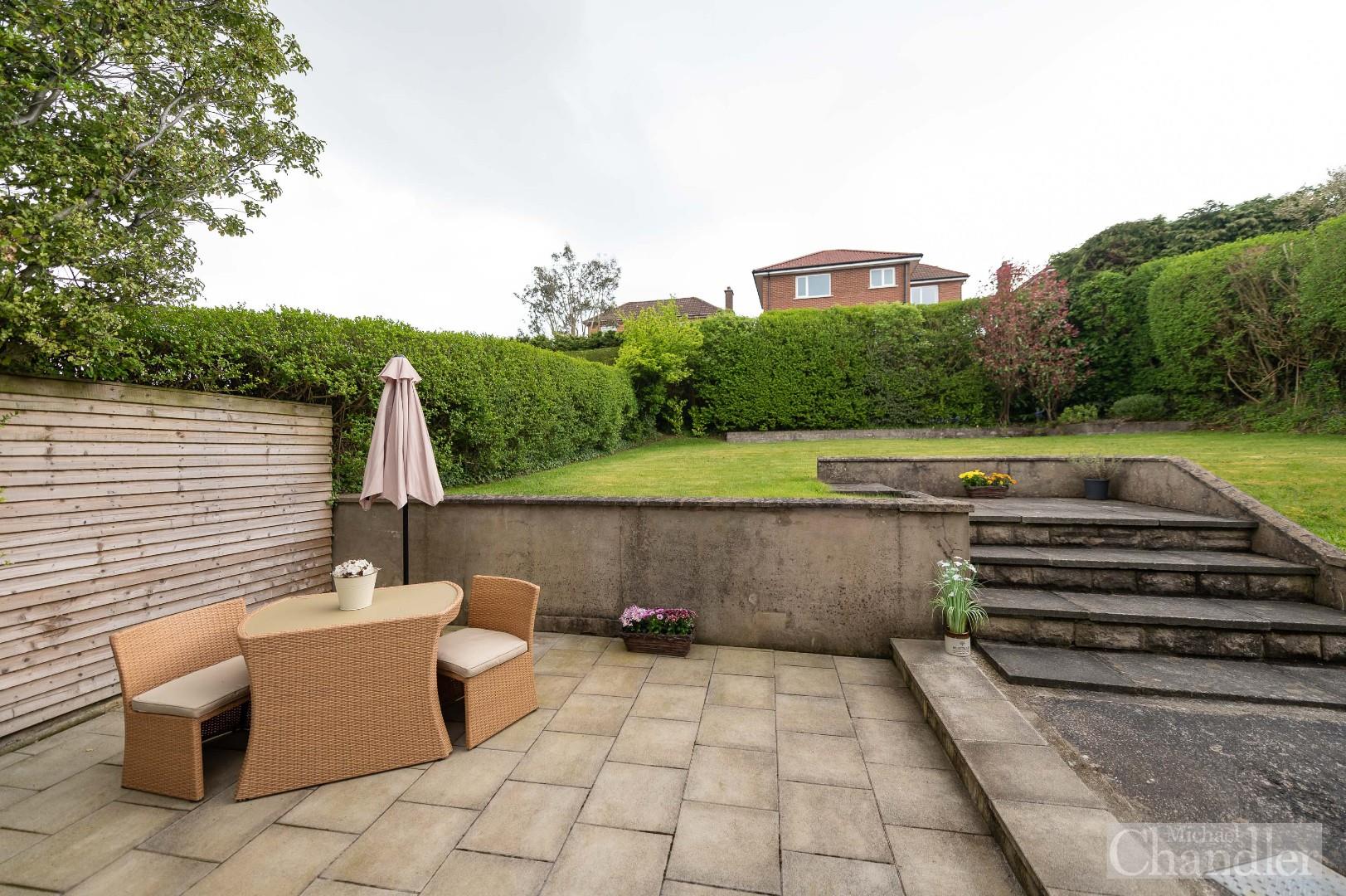 Superb rear garden with privacy, views and a large patio area for alfresco dining