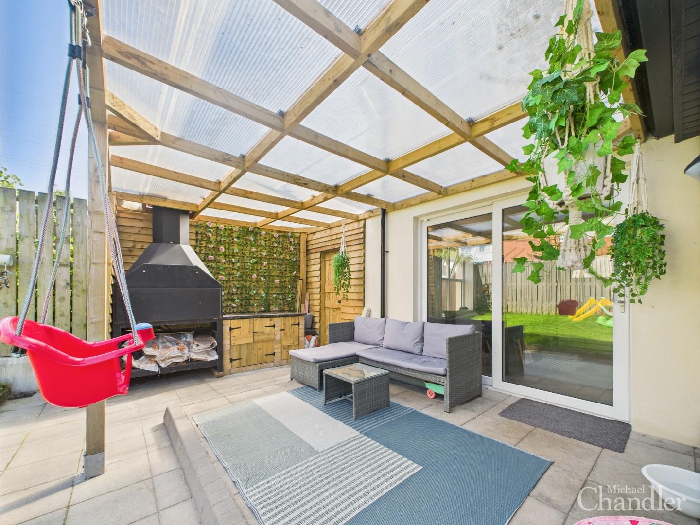 Fully enclosed rear garden laid in lawn with covered patio area - ideal for entertaining all year round