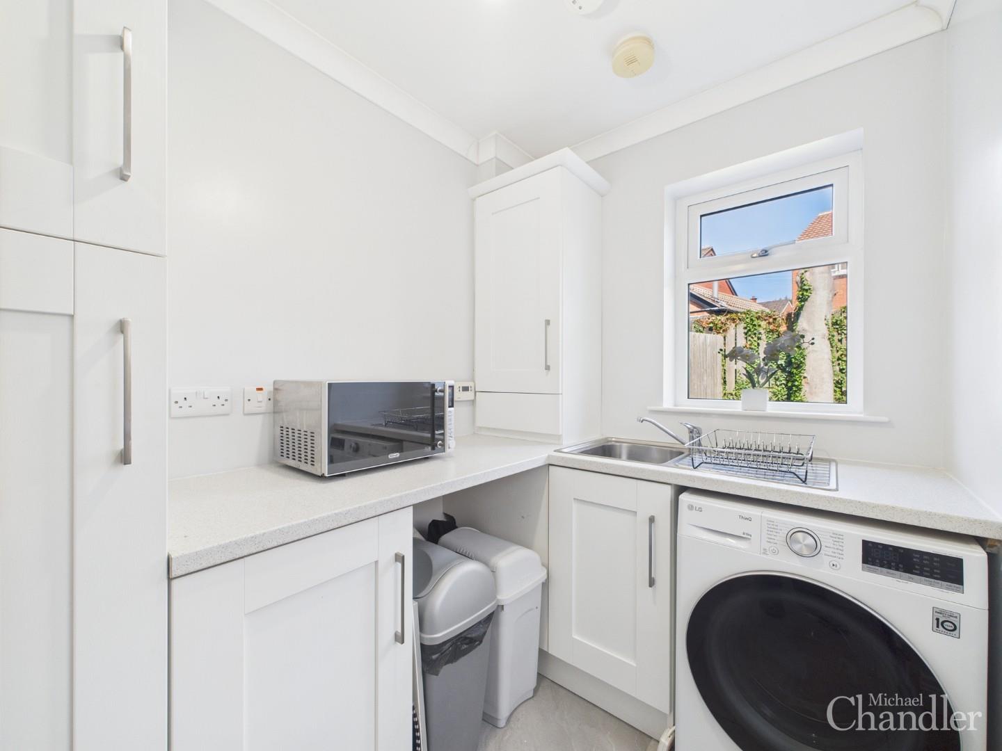 Adjoining utility room plumbed for white goods and offering handy additional storage