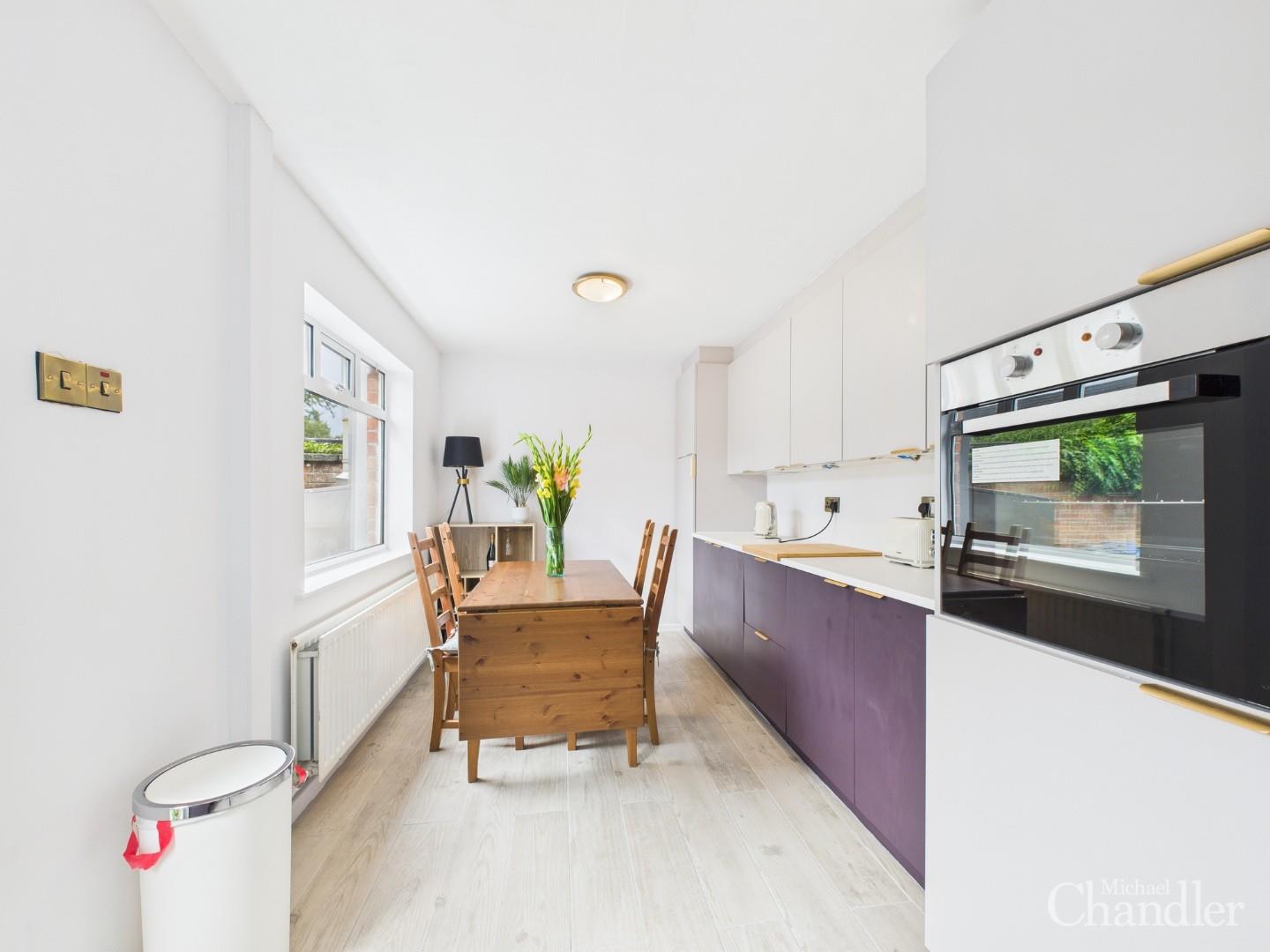 Modern refurbished kitchen complete with built-in appliances & open plan to dining area