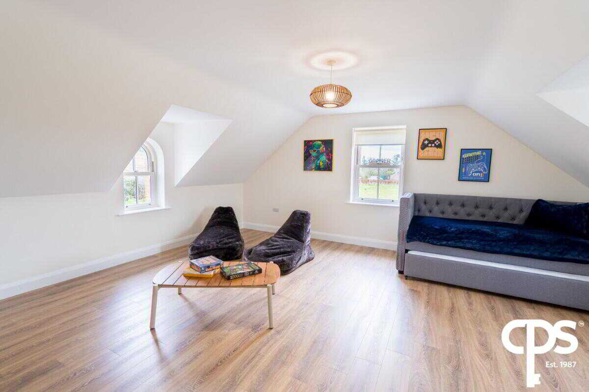Spacious double room with versatility of usage as a games room and office.