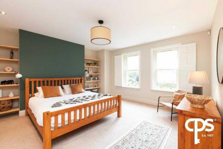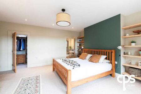 The principal suite is a spacious double room with fitted shelving in each of the alcoves beside the bed location. The room has carpet flooring and benefits from a walk-in wardrobe and en-suite bathroom.