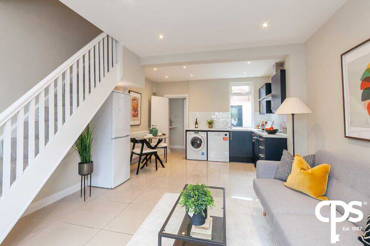 The bright and spacious open plan living, kitchen and dining area is finished to a high standard, offering a modern and social space at the heart of the home. The sleek new kitchen is fitted with contemporary units and integrated appliances.