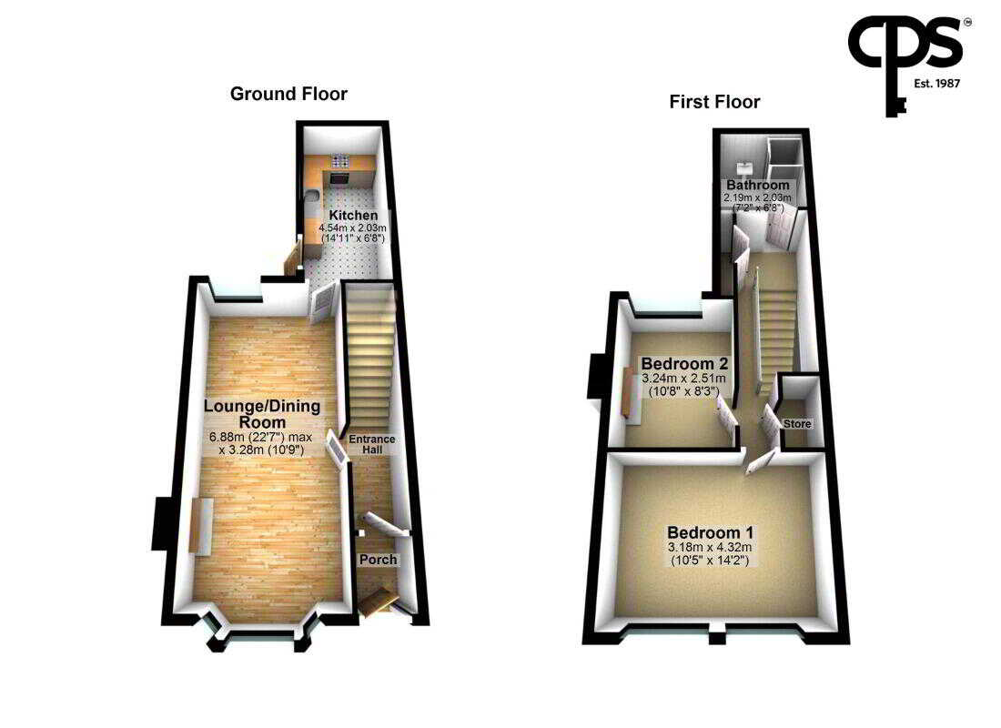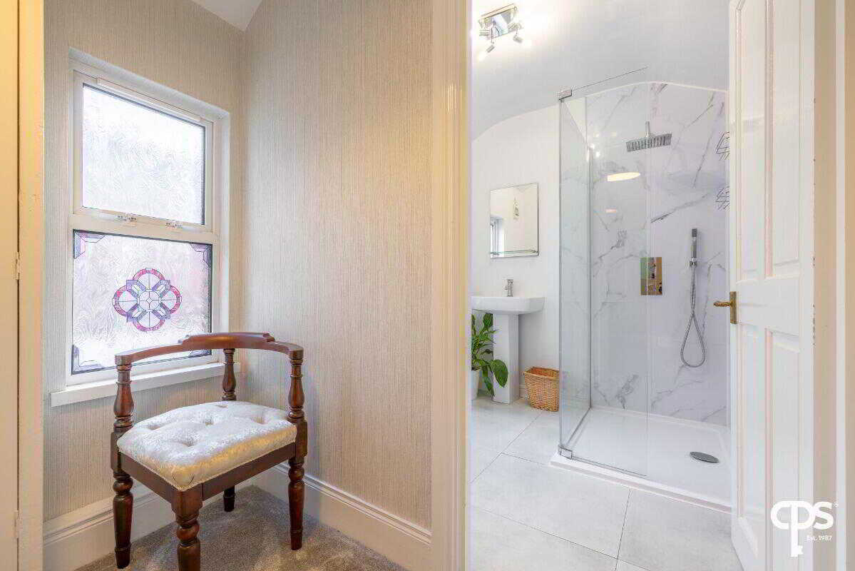 The first-floor hosts two well-proportioned bedroom flooded with natural light, with the second featuring charming fireplace. To finish this first-floor accommodation is a modern bathroom with three-piece suite and two storage cupboards on the landing.