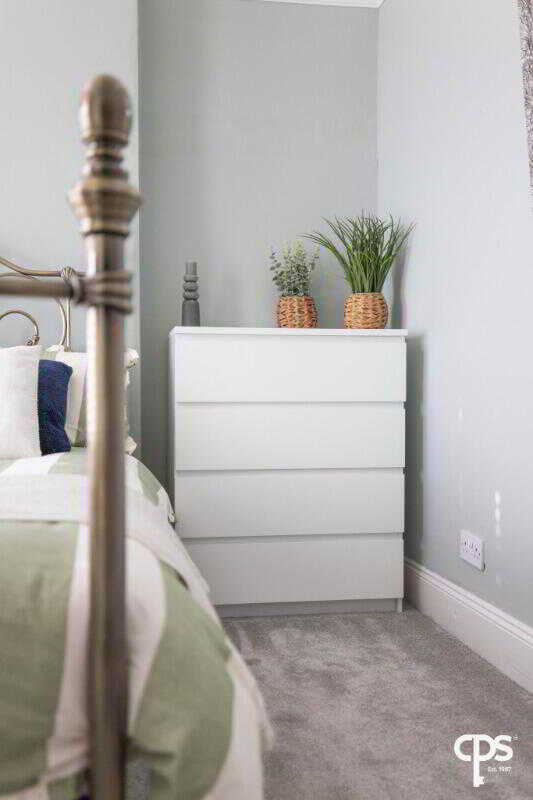 A bright and generously proportioned bedroom, benefitting from excellent natural light and ample space for a range of freestanding furniture. This room is finished with carpet flooring adding warmth and comfort underfoot. This bedroom has a well-balanced layout making it ideal for practical storage options and a calm atmosphere.