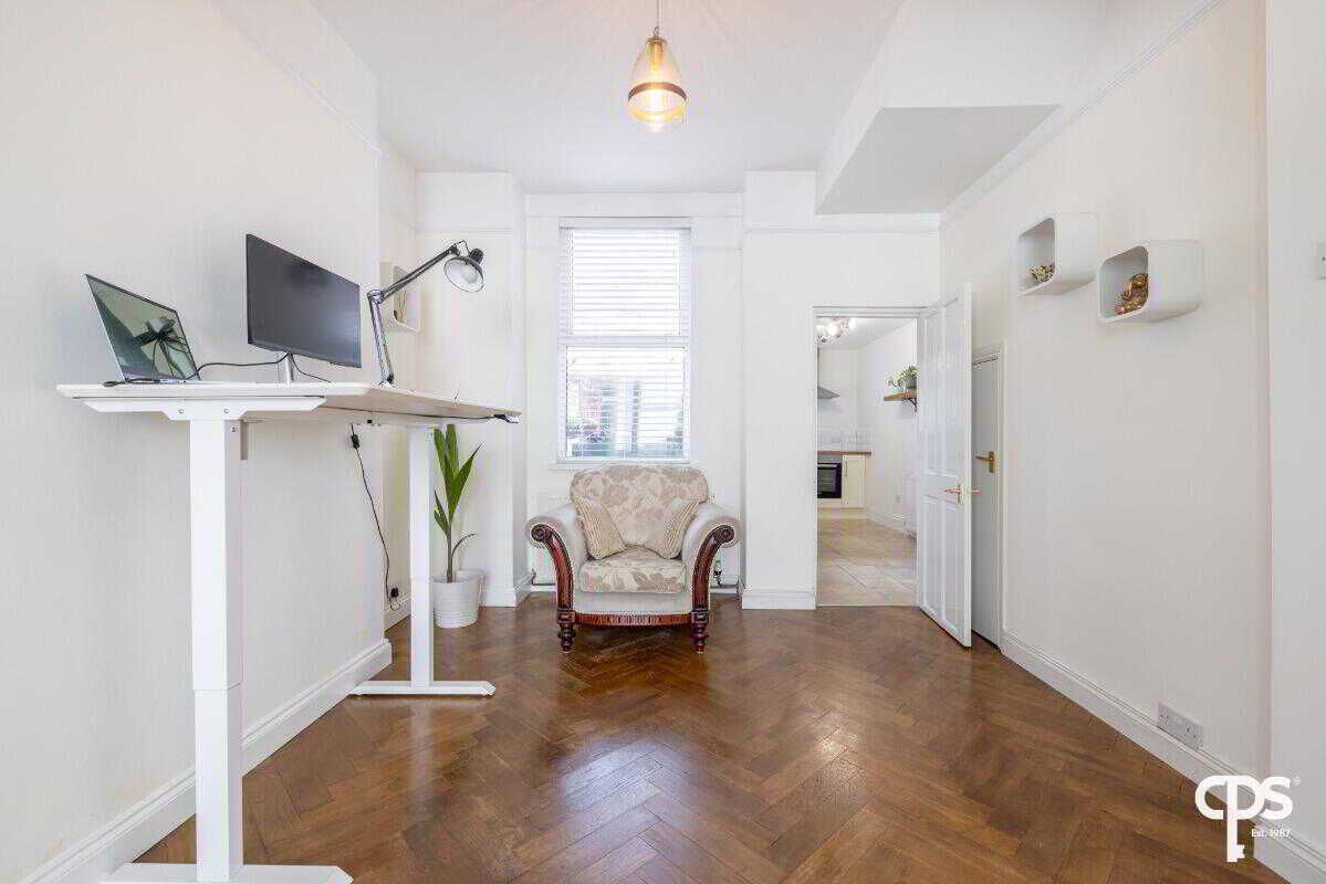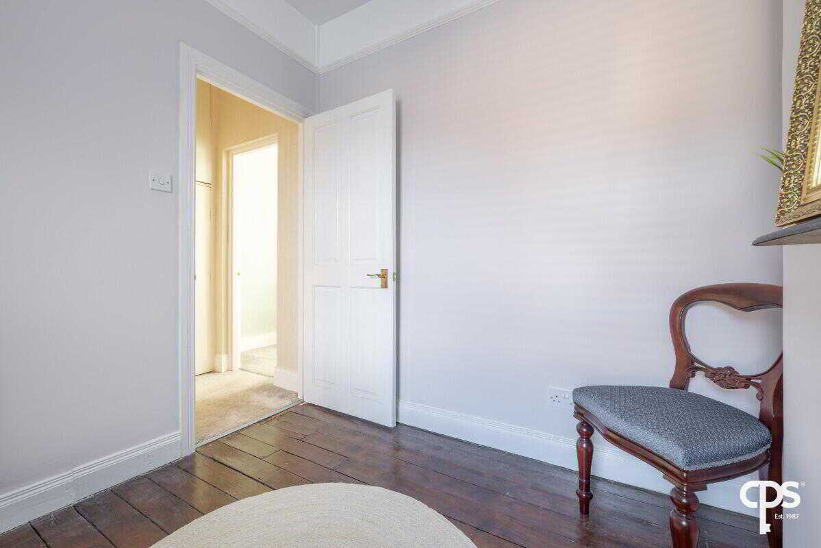 A spacious and versatile second bedroom, enhanced by an attractive feature fireplace which adds charm and character to the room. The hardwood flooring provides a stylish and low maintenance finish, complementing the traditional features. This room is ideal as a guest bedroom =, home office or nursery as it offers flexibility to suit a variety of needs.