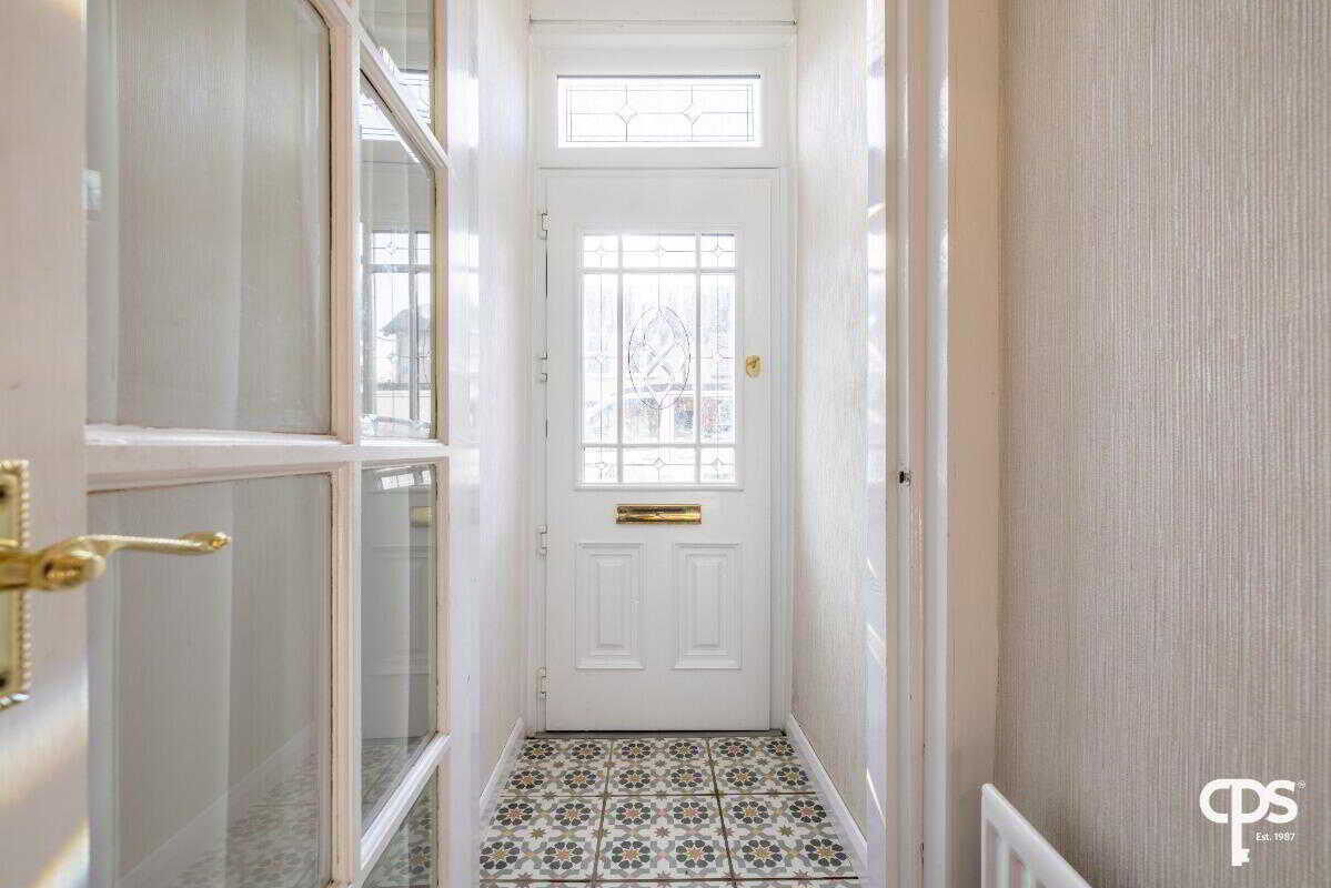 Bright and welcoming entrance hall with attractive tiled flooring in porch through to hard wood herring bone hallway leading to carpeted staircase.