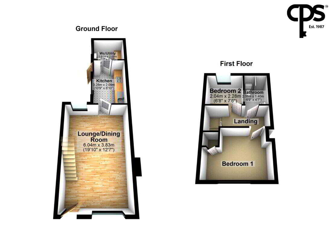 The first floor holds two well-proportioned bedrooms and a contemporary bathroom with a sleek three-piece suite to complete the upstairs. Externally, the property features a front garden and an enclosed rear yard providing space for outdoor seating.