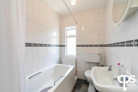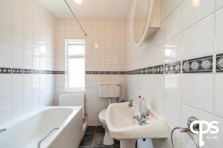 Ceramic tile flooring, ceramic floor to ceiling wall tiles, fitted panel bath, pedestal wash hand basin, low flush WC