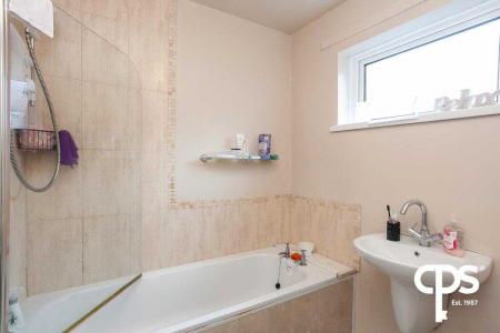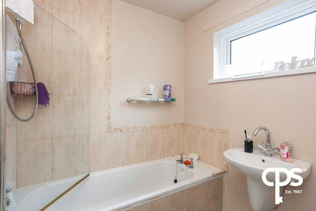 Bathroom – Sleek main bathroom with three-piece suite, including bath, wash hand basin, and WC
