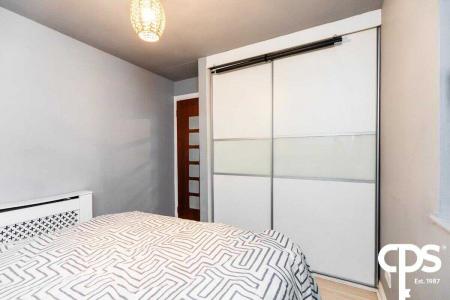 Spacious double bedroom with ample natural light through large window. This bedroom benefits from built in slide robes and wood effect laminate flooring.
